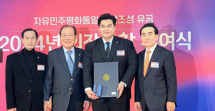 [보도자료]제9대 서울특별시 영등포구의회 「국민의힘」 박현우 의원(여의동, 신길1동)은 27일 서울 중구 소재 민주평화통일자문회의(사무처장 태영호) 사무처 2층 대회의실에서 열린 자유민주평화통일 기반조성 유공자 대상 ‘2024년 의장표창 수여식’에서 의장(대통령) 표창을 수상했다.민주평화통일자문회의(이하 평통)는 「민주평화통일자문회의법」 `제2조`에 근거하여 조국의 민주적 평화통일을 위한 정책의 수립 및 추진에 관하여 대통령에게 건의하고 자문에 응하는 대통령 직속 자문기구로서 이날 전수한 의장(대통령)표창은 ▲자유민주평화통일 기반조성과 ▲민주평통 발전에 뚜렷한 공적이 있으며 ▲국가 및 지역사회 발전에 헌신한 자문위원경력 3년 이상의 현직 자문위원으로서 해당 분야 공적을 5년 이상 쌓은 자문위원에게 수여하는 상이다.연세대학교 정치외교학과를 졸업한 박현우 의원은 황해도 실향민 3세로서 「국민의힘」 ▲김기현 당대표(정양석 위원장, 2023.6.30.), ▲한동훈 당대표(김형석 위원장, 2024.11.25.) 체제에서 각각 중앙당 통일위원회 위원 겸 간사로 연임되어 윤석열 정부의 “자유, 평화, 번영에 기여하는 글로벌 중추국가”라는 국정 목표를 이행하는 ‘힘에 의한 평화’와 ‘담대한 구상’의 기조에서 ‘8.15통일 독트린’을 계승·발전함으로써 국제적 연대를 통한 북한 비핵화의 진전과 새로운 통일미래 비전 제시로 통일 공감대 확산과 북한의 올바른 태도 변화를 당정 협의를 통해 모색해 왔다.박 의원은 남북 청년 네트워크 「통일의별」 대표와 「한반도미래포럼」(이사장 천영우) 연구원으로 통일 분야 전문가로 활동했으며 연세대학교 통일학 석사 취득 후 동 대학교 일반대학원 정치학 박사과정 중 「국민의힘」 통일위원회 위원 겸 간사로 연임됐고, 「민주평통 서울지역회의 서울평화통일포럼」 연구위원으로 각각 위촉(2023.11.21.)되면서 자유민주평화통일의 헌법적 가치 확산을 위한 통일 연구 및 의정활동에 전력해 왔다. 특히 박현우 의원은 ‘영등포구 남북 이산가족 지원 조례’를 기초의회 최초로 성안(2024.8.27.)하여 인도적 차원의 가족권 보호와 관련 단체 지원의 근거를 마련했고, 국가기념일로 지정된 제2회 이산가족의 날에 공식 초청을 받아 조례안 제정의 의의와 목표에 관한 소감발표(2024.9.15.)를 했으며 KBS 한민족방송 ‘이산가족이야기, 나의 살던 고향은’ 인터뷰(2024.10.10.)를 통해 실향민 3세로서 남겨진 가족의 이야기와 통일의 의미에 대한 생각을 나누었다. 시대적 사명을 다한 87체제 86운동권세력이 자기 모순적으로 헌법에 규정한 자유민주주의 통일을 부정하는 반헌법적 태도에 이의를 제기하면서 ‘40대 기수론’을 주창하고 나선 박현우 의원은 민주평통 영등포구협의회 부회장 겸 청년위원장에 위촉(2024.10.7.)되어 반헌법적 통일 포기 반대를 촉구하는 결의대회를 제안하여 영등포구청 앞 ‘반헌법적 통일 포기 규탄을 위한 1인 릴레이 캠페인’ 출정식을 시작으로 여의도 국회 앞 1인 릴레이 캠페인을 성공적으로 추동했다. 또한 박 의원은 호국보훈의 의미를 되새기고 국가를 위해 헌신한 분들의 희생을 기리고자 「326호국보훈연구소」(소장 최원일)과 공동 주관으로 ‘서해를 수호한 숨은 영웅들의 이야기’를 주제로 제1연평해전과 제2연평해전 관련 호국보훈 세미나를 개최(2024.11.30.)하여 오물풍선 살포 등 북한의 잇따른 대남도발에 경각심을 더했다.「국민의힘」 통일위원회 간사로서 박현우 의원은 “대통령과 대통령 권한대행에 대한 국회의 탄핵소추로 그 직무가 정지되고, 헌정 초유의 ‘대행의 대행체제’로 국정이 혼란스러운 상황이지만, 이미 두 국가론을 주창하여 민족의 통일을 정면으로 부정하고, 러시아에 1만 1천 명 이상을 파병한 전범 김정은의 반민족적·반역사적·반인륜적 만행을 자유민주적 가치를 공유하는 국제연대를 통해 지속적으로 비판하고, 무엇보다 유엔 안보리 결의에 따르는 대북제재가 중단없이 실효성을 담보할 수 있도록 진지하고 지속적인 외교를 통해 강력하고 단합된 하나의 메시지 전달에 집중할 것”이라고 밝혔다. 그러면서 박 의원은 “한반도의 지정학적 한계를 뛰어넘어 동북아시아의 항구적 평화와 공동번영의 선도국으로서 새로운 미래를 스스로 결정하여 주체적으로 개척하려는 신진학자 및 신진정치인들과 함께 자유, 평화, 번영에 기여하는 ‘글로벌 중추국가 대한민국’으로 한걸음 더 전진하는 데에 모든 역량을 집중할 것”이라며 수상 소감을 밝혔다.