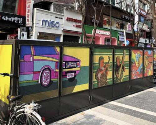 [보도자료]강동구가 천호동 로데오거리를 젊음과 활기가 넘치는 청년 거점공간으로 조성하기 위해 새단장을 마쳤다고 2일 밝혔다.천호동 로데오거리(천호대로157길)는 지하철 5·8호선이 교차하는 천호역에 위치하고 있으며, 강동구의 대표 상권가로서 인근에는 백화점, 대형마트 등 각종 편의시설이 밀집해 젊은 층의 방문자가 많은 곳이다.구는 이번에 로데오거리를 종합적으로 정비했다. 우선 도로 평탄화와 보도 정비를 실시하면서 가로시설물의 개발 원칙을 수립했고, 로데오거리 내 설치되는 시설물(벤치, 거리가게, 한전지상기기 가리개, 교통시설물 등)들이 통일감을 이루면서도 특색이 있도록 디자인 특화요소도 적용했다.특히, 새롭게 적용된 디자인 특화요소는 천호동 로데오거리 공간의 대표 컬러이자 ‘열정’과 ‘활기’를 나타내는 주황, 노랑, 초록에서 추출한 특화 컬러 3색이다. 이에 더해 구를 대표하는 빗살무늬 토기의 패턴 중 하나인 ‘겹톱니무늬’를 패턴화해 벤치시설물 및 거리가게 시설물에 적용하는 등 강동구 내 전체 시설물 간 통일감을 형성하면서도 천호동 로데오거리만의 색깔이 느껴질 수 있도록 했다.게다가 전체 공간의 구간별 특징을 분석해 각 구간별로 지정 컬러를 설정 및 디자인했고, 한전지상기기 가리개의 다양한 작품과도 연결될 수 있도록 배치했다.구는 이번 종합 정비를 통해 천호동 로데오거리가 젊고 활기찬 이미지를 바탕으로 청년 거점공간으로 거듭날 뿐만 아니라 보행 편의와 도시미관의 향상에 기여할 것으로 기대하고 있다.김준오 도시경관과장은 “이번 새단장으로 지역 상권이 활성화되고 청년들의 활동이 활발히 이루어지는 매력적인 공간이 될 수 있도록 많이 이용해 주시길 바란다”라고 말했다.