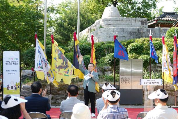 중랑구는 6월 11일 오후, 봉화산 정상의 ‘아차산 봉수대’ 터에서 조선시대 통신수단이었던 봉수 거화 의식을 재현하는 ‘봉수 거화 재현식’을 개최했다.이번 행사는 6.10. 만세운동 기념일을 맞아, 일제강점기에도 봉수대가 만세운동의 연락책으로 활용됐다는 역사적 사실에 착안하여 기획됐다. ‘아차산 봉수대’는 조선시대 서울을 방어하기 위한 중요한 통신시설로, 현재의 봉수대는 1994년 서울정도 600년 기념 사업을 통해 복원된 것이다.이날 행사는 지역 주민 100여 명과 함께 류경기 중랑구청장, 국회의원, 시·구의원, 중랑문화재단 대표이사, 중랑문화원장, 주민자치위원 등 주요 내빈이 참석한 가운데 다양한 프로그램이 진행됐다.재현식은 청소년들로 구성된 사물놀이단 ‘뚜닥깨비’의 공연과 아름다운 해금 연주로 막을 올렸다. 이어 전통 복식을 갖춘 별장과 봉군 2조가 봉수 거화 의식을 수행했다. 봉수대를 경비하는 수위의식, 순라의식, 교대의식을 차례로 진행한 뒤, 평상시 거화 신호인 ‘1거’를 올리는 순서로 마무리됐다.특히 올해는 단순한 의식 재현을 넘어 주민이 전통문화를 직접 체험할 수 있도록 구성됐다. 조선시대 관군 복장 체험, 투호 및 제기차기 등 전통놀이 체험이 함께 진행돼 남녀노소 모두의 호응을 얻었다.류경기 중랑구청장은 “오늘 행사를 통해 봉수대가 지닌 역사적 상징성과 공동체의 연대 의미를 되새기는 계기가 되길 바란다”라며, “앞으로도 우리 지역의 문화유산을 활용한 다양한 프로그램을 통해 구민들이 오감으로 문화를 체험할 수 있도록 힘쓰겠다”라고 말했다.