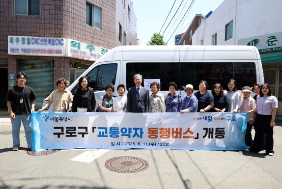 구로구가 6월 16일부터 교통약자의 이동권 강화를 위한 ‘교통약자 동행버스’ 운행을 시작한다. 이번 사업은 서울시 ‘약자와의 동행 자치구 지원사업’에 선정돼 총 6,500만원의 시비를 투입, 2026년 1월까지 운행한다.‘약자와의 동행 자치구 지원사업’은 서울시가 자치구별 지역 특성에 맞는 복지서비스를 발굴해 복지 사각지대를 해소하려는 공모사업이다. 구는 교통약자를 위한 동행버스 사업을 제안해 3월 25일 선정됐으며, 6월 11일부터 13일까지 시범 운행을 거쳐 6월 16일 본격 운행에 들어간다.교통약자 동행버스는 신도림동 293번지 일원부터 구로구보건소, 구로구청을 잇는 노선으로, 구로구보건소, 신도림역, 구로구청 외에 송학경로당을 추가해 총 4개 정류장에 정차한다.주요 이용 대상은 어르신, 장애인, 임산부, 영유아 동반자 등 교통약자와 일시적 교통약자(당일 헌혈자, 다리 깁스자, 발목 또는 무릎 부상 등)이다.운행 시간은 평일 오전 9시부터 오후 6시까지이며, 정오부터 오후 1시까지 점심시간을 제외한 하루 8회 운영한다. 토요일과 공휴일에는 운행하지 않는다.교통약자 동행버스 운행은 최근 시내버스 노선 축소로 인한 대중교통 공백을 메우고, 지역 내 교통 불균형 문제를 해소하는 데 중점을 뒀다. 특히, 거동이 불편한 교통약자에게 안정적인 교통수단을 제공해 생활 편의를 실질적으로 높일 것으로 기대된다.한편, 구는 운행 시작에 앞서 6월 11일 오후 1시 신도림동 송학경로당 앞에서 ‘교통약자 동행버스 운행 개시 기념행사’를 열었다. 이날 행사에는 장인홍 구로구청장과 주민 등이 참석해 첫 출발을 축하하고 지역 주민들과 함께 소통하는 시간을 가졌다.장인홍 구로구청장은 “교통약자 동행버스가 교통 소외지역 주민의 실질적 이동권을 보장하는 계기가 될 것”이라며 “앞으로도 모든 주민이 안전하고 편리하게 이동할 수 있도록 지속적인 개선을 이어가겠다”고 말했다.