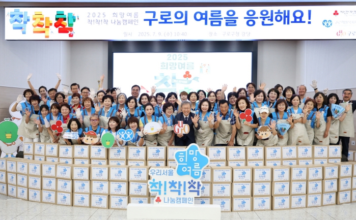 구로구는 7월 9일 구청 5층 강당에서 ‘2025 희망여름 착!착!착! 나눔캠페인’ 출범식을 열고 여름철 취약계층 지원에 나섰다고 밝혔다. ‘희망여름 착!착!착! 나눔캠페인’은 무더위로 결식이 우려되는 독거 어르신과 장애인 등 취약계층이 건강하게 여름을 보낼 수 있도록 돕기 위한 여름철 집중 모금·지원 캠페인이다. 이날 행사에는 장인홍 구청장, 서울시사회복지공동모금회, 구로희망복지재단, 구로구푸드뱅크마켓센터 관계자 등 100여 명이 참석해 ‘시원한 여름나기 지원사업’과 ‘지역사회 안심선 지키기 지원사업’ 전달식, 혹서기 대비 식품꾸러미 제작 활동 등을 진행했다. 구는 이번 캠페인을 통해 720가구에 5만원 상당의 삼계탕, 갈비탕 등 간편 보양식과 라면 등 식품 꾸러미를 마련해, 캠페인 종료 후 동 지역사회보장협의체와 행정 차량을 통해 가정별로 전달할 예정이다. 장인홍 구청장은 “이번 나눔캠페인이 어려운 이웃들이 건강하게 여름을 날 수 있도록 도움이 되길 바란다”며 “앞으로도 민관이 협력해 촘촘한 복지 안전망을 만들고 나눔 문화가 확산되도록 노력하겠다”고 말했다.