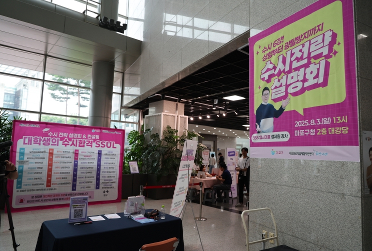 박강수 마포구청장은 8월 3일 마포구청에서 열린 ‘2026학년도 수시 전략 설명회 및 컨설팅에 참석했다. 이번 행사는 마포진로직업체험지원센터와 함께 대입을 준비하는 고3 학생과 재수생, 진로에 고민이 깊은 학부모들에게 실질적인 정보를 제공하고 진로 선택에 도움을 주기 위해 마련됐다. 행사는 ▲2026학년도 수시 전략 설명회 ▲1:1 진학 상담 ▲대학생 수시 노하우 부스 운영 등으로 구성됐다. 1:1 진학 상담은 인문, 자연, 예체능 계열로 나뉘어 진행됐으며, 사전 신청자를 대상으로 오전 10시부터 오후 4시 10분까지 마포구청 12층 중강당에서 열렸다. 상담은 서울특별시교육청 대학진학지도지원단 소속 교사들이 맡아 전문성을 더했다. 수시 전략 설명회는 오후 1시부터 2층 대강당에서 열렸으며, 정제원 EBS 입시 대표 강사가 강연을 맡아 상향·적정·안정 지원 전략 등 수시 합격을 위한 로드맵을 제시했다. 또한 대학 및 학과별 주요 지원 전략과 질의응답을 통해 수험생 맞춤형 전략 수립에 도움이 되는 정보를 제공했다. 대학생 수시 노하우 부스에는 수시 전형으로 합격한 대학생 멘토들이 참여해 합격 노하우와 준비 과정을 직접 들려주었다. 인문사회, 이공계, 의료보건, 예체능 등 4개 계열에서 총 25개 대학, 27개 학과의 멘토가 함께했다. 박강수 마포구청장은 “마포구는 앞으로도 학생들을 위한 진로 상담과 입시 준비에 아낌없는 지원을 이어가겠다”라며, “오늘 이 자리가 수험생들에게는 길을 찾는 나침반이, 학부모에게는 안심과 확신을 주는 기회가 되길 바란다”라고 말했다.