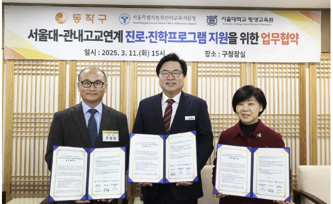 동작구가 고교학점제 전면 시행에 발맞춰 도입한 ‘서울대-고교 연계 진로‧진학 프로그램’이 교육 현장의 긍정적인 반응 속에 진행 중이라고 4일 밝혔다.앞서 구는 지난 3월 서울대학교 평생교육원 및 동작관악교육지원청과 업무협약을 맺고, 5월부터 본격 운영에 들어갔다.본 프로그램은 학생들의 진로 설계와 전공 탐색을 지원하기 위한 맞춤형 교육사업으로 마련됐다.학교별로 ▲첨단 융합 ▲인문‧사회 ▲수학‧과학 ▲창의‧예술 ▲진로 등 5개 분야 중에서 희망하는 강좌를 직접 선택할 수 있는 것이 특징이며, 서울대 강사진이 직접 학교를 찾아가는 방식으로 이뤄졌다.특히, 참여 결과가 학생생활기록부(생기부)에 기재된다는 이점 때문에 고교학점제에 대비하는 학생들과 교사들로부터 큰 호응을 얻었다.구에 따르면 관내 5개 일반고를 대상으로 진행한 이번 프로그램에는 총 7개 강좌에 149명의 학생이 참여했다.▲성남고 ‘빅테이터와 AI 기반 스마트팜(20명)’ ▲수도여고 ‘코딩으로 공부하는 과학이야기(28명)’, ‘나만의 시선으로 쓰는 예술문화 평론(31명)’ ▲숭의여고 ‘쉽고 재미있게 배우는 실전 마케팅(20명)’과 ‘스마트폰으로 만드는 영상 콘텐츠 제작(18명)’ ▲영등포고 ‘AI를 활용한 단백질 표적 신약 개발(20명)’ ▲경문고 ‘청소년을 위한 교육학 입문(12명)’ 등이다.구는 하반기에도 관계기관과의 지속적 논의를 통해 추진방안을 검토할 예정이며, 학교별 교육 결과 등 프로그램 전반에 대한 평가를 통해 사업 개선 방향을 도출할 계획이다.박일하 동작구청장은 “서울대 평생교육원과 함께한 이번 프로그램이 고교생들에게 진로를 구체화할 수 있는 의미 있는 계기가 됐길 바란다”며 “앞으로도 동작구는 교육도시로서 학교와 대학, 지역사회의 긴밀한 연계를 통해 수준 높은 공교육 기반을 마련해 나가겠다”고 말했다.