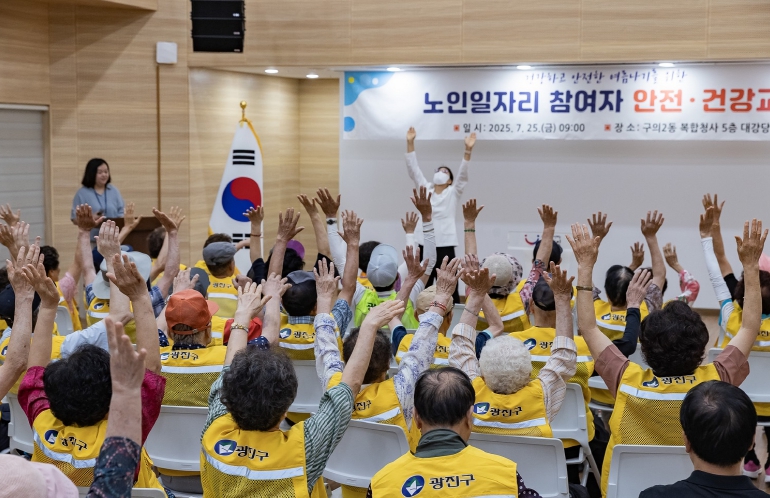 광진구는 여름철 폭염에 따른 안전사고를 예방하고자 지난 7월부터 ‘2025년 노인일자리 및 사회활동 지원 사업’ 혹서기 안전교육을 실시하고 있다. 노인일자리 구 직영 사업 참여자 587명을 대상으로 한 이번 교육은, 골목길 환경정비·도시락 배달 등 야외 활동에 따른 업무 특성을 반영해 여름철 안전 수칙을 중심으로 진행된다. 지난달에는 능동, 구의1·2·3동 등 6개 동에서 대면 교육을 마쳤으며 이달까지 군자동, 광장동 등에서 순차적으로 교육을 시행할 예정이다. 주요 교육 내용은 ▲폭염 시 행동 요령 ▲온열질환 증상 및 응급조치 요령 ▲교통안전 수칙 ▲화재 예방 등이다. 집중호우, 태풍 등 여름철 재난과 감염병의 대응 요령까지 포함해 종합적인 안전교육으로 구성됐다. 광진소방서, 광진경찰서 등 유관기관이 협력해 어르신 눈높이에 맞춰 실용적인 정보를 제공한다. 또한, 교육장 내에서 동 방문간호사가 혈압·혈당 측정 등 건강 상담을 병행하며 혹서기 취약계층인 어르신들의 건강 상태를 세심하게 점검한다. 올해는 각 동의 특색을 살린 문화 행사가 더해져 교육 현장이 한층 활기를 띠었다. 중곡1동에서는 광진모던색소폰 봉사단의 색소폰·통기타 공연이, 구의1동에서는 하모니카 연주가 식전 행사로 마련돼 어르신들의 큰 호응을 얻었다. 구는 교육과 더불어 폭염 대비 물품도 지원한다. 야외 활동 시 체온 조절과 자외선 차단에 도움을 받을 수 있도록 쿨토시, 쿨스카프 등 여름철 용품을 배부했다. 활동 시간 조정, 휴식 시간 확대, 작업 전후 건강 상태 확인 등 현장 중심의 안전관리 대책도 강화했다. 김경호 광진구청장은 “야외 활동이 많은 노인일자리의 특성상 어르신들의 건강과 안전을 최우선으로 살피는 노력이 필요하다”며, “현장에서 근무하는 어르신들이 안심하고 일하실 수 있도록 체계적인 교육과 현장 점검 등을 실시해 예방 중심의 관리체계를 지속해서 강화해 나가겠다”고 밝혔다.