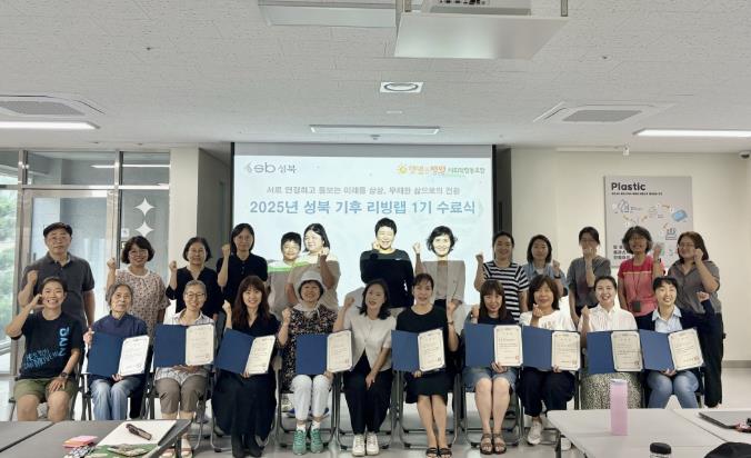 ‘성북 기후 리빙랩’ 1기 수료식이 8월 6일 성북리앤업사이클플라자에서 열렸다. 이번 수료식은 서로 연결하고 돌보는 미래를 상상하고 무해한 삶으로의 전환을 꿈꾸는 리빙랩 1기의 마지막 일정으로 마련됐다.성북 기후 리빙랩은 서울시 공모사업인 `2025년 지속가능한 기후시민 교육`에 선정돼 운영 중인 환경교육 프로그램이다. 성북구는 이번 프로그램을 통해 2050 탄소중립 실현의 실질적 이행 주체로서 현재의 환경문제를 주도적으로 해결하고, 미래의 가능성을 넓혀갈 수 있는 다양한 관점을 주민과 함께 탐색하고자 했다. 이를 위해 지역 내 탄소중립 실천 네트워크 조성을 목표로 프로그램을 기획했다.리빙랩은 총 2기로 구성되며, ‘기후위기 시대, 모두를 위한 경제와 돌봄’이라는 큰 주제 아래 1기는 ‘경제’, 2기는 ‘돌봄’에 초점을 맞춰 진행된다. 각 기수는 4주간 총 5차시로 구성돼 운영된다. 1기는 ‘기후위기 시대, 지구와 마을을 살리는 상상’을 시작으로 ‘기후위기와 지속가능한 도시’, ‘탄소중립을 위한 기초자치단체의 노력과 방향’, ‘무해한 삶의 시작: 샴푸바 만들기’ 등 이론과 실습을 병행하며, 마지막 차시는 ‘성북 기후 리빙랩: 성북 사람들의 무해한 삶’을 주제로 한 워크숍으로 마무리됐다.프로그램에 참여한 수강생들은 향후 마을 곳곳에서 탄소중립 실천가로 활동하며, 성북구 지역 특성과 주민 생활패턴을 반영한 현실적이고 지속가능한 해결 방안을 모색할 예정이다. 수료증을 받은 한 수강생은 “시민이 주체가 되어 일상에서 직접 기후 문제를 실험하고 해법을 찾는 프로그램이어서 신청하게 됐다”라며, “집단지성을 활용한 창의적인 해결 방안을 모색하는 과정에서 접한 여러 아이디어를 일상에서 어떻게 실천할 수 있을지 앞으로도 계속 고민해보겠다”라고 소감을 밝혔다.이승로 성북구청장은 “성북 기후 리빙랩은 단순한 이론 교육을 넘어 주민이 기후위기에 대한 인식을 높이고, 지역사회와 협력해 탄소중립 실천 네트워크를 강화하는 프로젝트”라며 “오는 8월 20일부터 진행되는 2기에도 많은 관심과 참여를 바란다”라고 말했다.