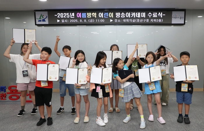 서울 용산구가 8월 8일 시사회와 수료식을 끝으로 ‘2025 여름방학 방송 아카데미’를 성황리에 마쳤다고 밝혔다.이번 아카데미는 학생들이 직접 카메라와 마이크를 다루며 생생한 방송 현장을 경험할 수 있도록 운영됐다. 방송을 꿈꾸는 청소년들에게 실질적인 진로 체험의 기회를 제공해 큰 호응을 얻었다.교육은 관내 초등학생을 대상으로 8월 4일부터 8일까지 5일간 진행됐다. 참여자는 사전 신청을 통해 선발됐으며, 모든 과정은 무료로 제공됐다. 프로그램은 ▲아나운서 발성 ▲뉴스 리딩 ▲더빙 실습 ▲촬영·편집 등 방송 제작 전 과정을 아우르는 실습 중심으로 구성됐다. 팀 단위 활동을 통해 협동심과 책임감도 함께 기를 수 있었다.마지막 날 열린 수료식에는 아이들을 비롯한 많은 학부모, 관계자들이 참석했다. 총 20시간의 교육을 이수한 참가자 전원에게는 용산구청장 명의의 수료증이 수여됐으며, 직접 제작한 뉴스 영상을 감상하는 시사회도 함께 열려 큰 박수를 받았다.현장은 감동과 성취의 분위기로 가득했다. 4학년 수료생 김 모 양은 “나중에 꼭 나만의 유튜브 채널을 열고 싶었는데, 이번 경험 덕분에 많은 것을 배웠다”고 소감을 전했다.무엇보다 이번 아카데미는 구가 보유한 방송국 전문 인력과 장비를 전면 개방해, 공공자원을 효율적으로 활용한 모범 사례로 평가된다. 구는 이번 성과를 토대로 향후 구민 참여형 사업을 더욱 활성화할 계획이다.박희영 용산구청장은 ”아이들이 꿈에 대한 흥미와 자신감을 얻고, 자기표현 능력까지 키운 뜻깊은 여름방학이 됐길 바란다“며, “용산구는 앞으로도 아이들이 마음껏 꿈을 키울 수 있도록 폭넓은 교육·문화 체험 기회를 마련해 나가겠다”고 말했다.한편, 용산구는 다양한 인터넷방송 콘텐츠 제작과 용산구청 유튜브 채널 운영을 통해 구민들에게 유익한 정보를 전하고 있다. 또한, 7개의 SNS 채널을 운영하며 온라인과 오프라인을 넘나드는 다채로운 구정 소통을 이어가고 있다.
