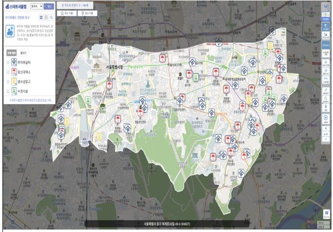 서울 중구가 주민들의 안전한 여름나기를 위해 `무더위에도 안전한 중구` 테마지도를 스마트서울맵을 통해 새롭게 선보였다.`무더위에도 안전한 중구` 지도에는 ▲무더위쉼터(70곳) ▲양산대여소(29곳) ▲생수냉장고(5곳) ▲바닥분수, 물놀이시설, 쿨링포그 등 수경시설(7곳) 등의 위치와 운영시간을 한눈에 확인할 수 있어, 폭염 상황에서 구민들이 가까운 안전시설을 신속하게 찾아 이용할 수 있도록 돕는다. 지도는 스마트서울맵의 도시생활지도에서 확인할 수 있으며 PC와 모바일을 통해 누구나 간편하게 찾아볼 수 있다.이번 서비스는 ‘내편중구 스마트 테마지도’ 구축 첫 단계로 진행되고 있다. 중구는 올해 초 남산자락숲길 동별 출입경로와 숲길 내 체육시설, 휴게시설 등의 정보가 담긴 지도를 구축해 제공하고 있다. 앞으로도 우리동네 표준지, 이순신길을 포함한 명예도로 등을 테마지도로 구축해 주민들에게 제공할 예정이다.한편, 중구는 무더위쉼터를 기존 66개소에서 70개소로 확대 운영한다. 중구교육지원센터, 중구청소년센터, 신당지하도상가 고객쉼터, 서울청소년센터 등 4곳이 추가 지정됐다.폭염 특보가 발효되면, 누구나 이용할 수 있는 구청사와 15개 동주민센터는 주말에도 연장 운영한다. 어르신들이 더위를 피할 수 있도록 관내 18개 경로당은 토요일에도 문을 연다.또한, 지난 7월에는 신당동 마을마당과 다산동 새싹마을마당에 쿨링포그를 새로 설치하고, 관내 공원 등에 설치된 쿨링포그를 점검·정비하며 구민들이 더위를 식힐 수 있는 공간을 마련했다.구 관계자는 “폭염이 일상화된 시대에 더위를 피할 수 있는 정보를 보다 쉽게 확인할 수 있도록 지도로 만들었다”며 “구민들이 건강하고 안전한 여름을 보낼 수 있도록 지속적으로 살피겠다”고 밝혔다.