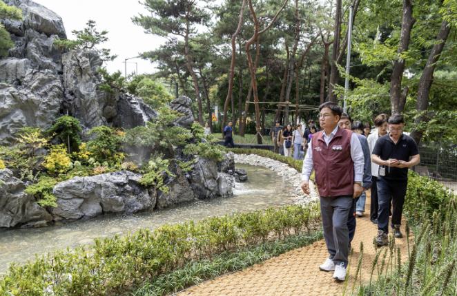 마포구는 마포역 인근 마포경관녹지(마포동 448)에 4m 높이의 인공 암석폭포인 ‘댕댕이 폭포’를 완공하고, 인근 반려견 전용 놀이시설 ‘댕댕이 놀이터’와 연계한 복합 휴식공간 ‘댕댕이 쉼터’를 조성했다.이번 사업은 마포대교와 강변북로 진입 구간의 단조로운 경관녹지를 개선하고, 주민과 반려견이 함께 즐길 수 있는 휴식공간을 확충하기 위해 추진됐다.‘댕댕이 쉼터’의 대표 명소인 ‘댕댕이 폭포’는 정원을 포함해 총 240㎡ 규모의 인공 암석폭포로, 주변에 사계절 내내 즐길 수 있는 다채로운 꽃과 나무가 식재돼 시원한 물줄기와 녹지 경관이 어우러진다.또한 양방향에서 감상할 수 있도록 설계돼 어느 위치에서나 폭포의 전경을 즐길 수 있으며, 여름철에는 시원한 경관과 그늘을 제공해 도심 열섬 현상 완화에도 기여한다.‘댕댕이 폭포’ 옆에는 ‘댕댕이 놀이터’가 함께 자리해있다. 안전 울타리와 놀이기구, 음수대 등 반려견 전용 편의시설을 갖추고 있어 반려견이 마음껏 뛰어놀 수 있으며, 산책로 곳곳에 배치된 벤치에서 산책을 하거나 반려견 놀이 후 폭포의 시원한 물소리와 풍경을 감상하며 편안하게 쉴 수 있다.이처럼 ‘댕댕이 쉼터’는 기존 반려견 놀이공간인 ‘댕댕이 놀이터’와 폭포 정원 ‘댕댕이 폭포’를 하나로 연결해, 이용객들이 폭포와 놀이터를 자유롭게 오가며 휴식과 놀이를 동시에 즐길 수 있는 복합형 공간으로 구성됐다.박강수 마포구청장은 “댕댕이 쉼터는 폭포의 시원한 경관과 안전한 놀이공간을 한곳에 담아, 반려견과 보호자가 함께 추억을 만들 수 있는 특별한 장소”라며, “마포경관녹지의 아름다운 경관 속에서 시원한 폭포와 쾌적한 녹지를 즐기며, 바쁜 일상 속에서도 잠시 숨을 고르고 재충전할 수 있기를 바란다”라고 말했다.이어 “반려동물 양육 가구가 꾸준히 늘고 있는 만큼, 앞으로도 주민과 반려동물이 함께 이용하고 즐길 수 있는 친화 공간을 확충해, 마포를 사람과 반려동물이 함께 행복한 도시로 만들어 가겠다”라고 덧붙였다.한편 구는, 난지한강공원 속 마포 반려동물 캠핑장에 ‘댕댕이 물놀이장’을 조성해 8월 31일까지 운영하며, 오는 8월 18일 오후 4시에는 ‘댕댕이 폭포’ 개장식을 개최할 예정이다.