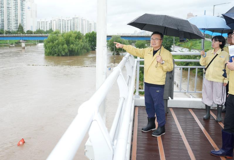 중랑구는 8월 13일 내린 집중호우와 관련해 중랑천 침수 구간에 대한 긴급 현장 점검을 실시했다.이번 점검은 13일 오후 1시 10분 중랑천 홍수주의보 발효에 따라 하천 내 인명사고를 예방하기 위해 진행됐다. 류경기 중랑구청장은 현장을 찾아 하천 진출입 차단시설, 하천순찰단 운영 상황, 접근로 통제 현황 등을 면밀히 살폈으며, 홍수주의보 수위 도달에 따른 인명피해 우려 요소가 없는지 직접 확인했다.류경기 중랑구청장은 “이번 호우와 관련해 철저한 상황관리를 통해 단 한 건의 인명피해도 발생하지 않도록 최선을 다하겠다”며 “집중호우 이후 신속한 시설정비로 주민 불편을 최소화하겠다”고 말했다.