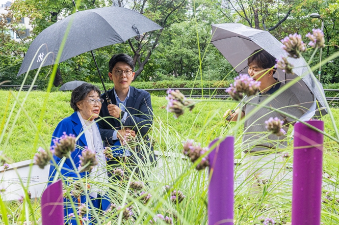 김병민 서울시 정무부시장은 ‘일본군 위안부 피해자 기림의 날’(8월 14일)을 하루 앞둔 13일 오후 4시, 일본군 위안부 피해자 이용수 할머니와 함께 중구 남산공원 통감관저 터에 서울시가 조성한 일본군 위안부 피해자 ‘기억의 터’를 방문해 추모했다. 일본군 ‘위안부’ 피해자 기림의 날은 1991년 故김학순 할머니가 일본군 위안부 피해 사실을 처음 공개 증언한 날로, 피해자들의 존엄과 명예회복, 역사적 진실을 알리기 위해 제정된 법정 기념일이다. ‘기억의 터’는 위안부 피해자들의 존엄과 용기를 빛과 목소리로 형상화해, 시민들이 걸으며 기억하고 연대할 수 있도록 서울시가 2016년 조성한 추모‧기림 공간이다. 시는 지난 2023년 ‘기억의 터’ 조성에 참여한 임옥상 작가가 강제추행 혐의로 유죄를 선고받자 그의 작품을 유지하는 것이 전쟁 성범죄 피해로 고통받은 위안부 피해자들을 모욕하고 국민정서에도 반하는 일이라고 보고, 2023년 9월 `기억의 터` 내 임옥상의 조형물 2점을 철거한 바 있다. 이후 시는 `기억의 터` 조성 취지를 계승해 재조성을 위한 작품공모를 거쳐 지난해 11월부터 재조성 공사에 들어갔으며, 지난 7월 재조성을 완료했다. 김병민 부시장과 이용수 할머니는 함께 ‘기억의 터’를 둘러보며 일본군 위안부 피해자들의 용기에 깊은 존경을 표하고, 그들의 아픔을 기억하며 추모하는 시간을 가졌다. 이용수 할머니는 “아픈 역사를 잊지 않고 기억하는 것이 평화를 만드는 시작”이라며 “많은 시민이 이곳을 찾아와 희망을 이어가길 바란다”고 말했다. 김병민 서울시 정무부시장은 “강요된 침묵을 깨고 용기 있게 목소리를 낸 할머니들 덕분에 역사의 물줄기가 바뀌었다”라며 “서울시는 할머니들의 증언이 인류 보편의 가치로 자리매김할 수 있도록 끝까지 함께 하겠다”라고 말했다.