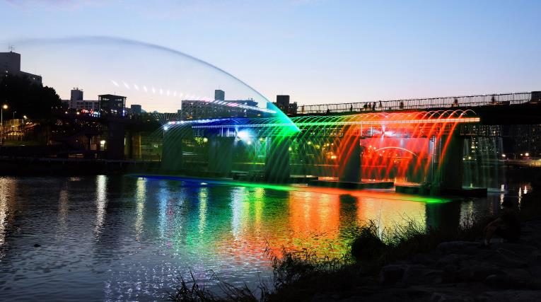 서울 노원구가 오는 22일부터 ‘경춘철교 음악분수’를 조성하고 운영을 시작한다고 밝혔다.경춘철교는 과거 경춘선 열차가 중랑천을 건너기 위해 놓인 철교다. 폐선 이후 ‘경춘선숲길’의 일부로 조성돼 주민들의 일상적인 이동과 대표 산책로 역할을 하고 있다. 구는 경춘철교에 주변 경관과 어울리는 화려한 레이저 분수를 설치해 산책로를 이용하는 주민들에게 볼거리를 제공하는 한편 또 하나의 수변 명소를 만든다는 방침이다.경춘철교 교량 중앙부에 설치된 분수는 국내 최초로 4대의 레이저와 미러 기술을 합친 연출이 더해져 시각적 몰입감을 극대화한다. ▲기차 바퀴를 형상화한 ‘트위스터 분수’ ▲큰 아치를 그리며 쏟아지는 ‘빅아치 분수’ ▲다채로운 색채와 움직임을 구현하는 레이저 퍼포먼스가 어우러져 풍성한 볼거리를 제공한다. 고음부터 저음까지 ‘생생한 음향을 구현하는 음향시스템’까지 더해져 관객의 눈과 귀를 사로잡을 예정이다.음악분수는 개장행사와 함께 오는 8월 22일부터 시작된다. 매주 화요일부터 일요일까지 하루 2회 운영되며 매주 월요일은 정기 점검일로 운영하지 않는다. 각 회차는 약 20분간 이어지며, 운영시간은 시기에 따라 다르게 운영된다. 5월부터 8월까지는 ▲오후 8시와 오후 9시 각 1회씩, 9월과 10월에는 ▲오후 7시 30분과 오후 8시 30분에 각 1회씩 운영된다. 자세한 일정과 공연 정보는 노원구청 홈페이지에서 확인할 수 있다총 21곡이 공연에 사용되며, 이 중 오프닝곡과 엔딩곡은 창작곡으로 구성해 공연의 완성도를 높였다. 특히 개장일에는 ‘시간여행’을 테마로 한 창작곡과 레이저 애니메이션이 어우러진 오프닝 공연이 진행된다. 옛 경춘선 기차의 추억과 현재 숲길의 풍경을 예술적으로 구현해 방문객에게 감동을 선사할 예정이다.또한 구는 음악분수 운영 중 안전에도 철저를 기한다는 방침이다. 분수 운영시간에 안전요원을 상시 배치하여 위험 요소를 사전 점검하고, 비상 상황에 신속히 대응할 수 있도록 준비한다. 또한 관람객의 안전과 편의를 위해 관람구역에 데크를 설치했다.한편, 이번 음악분수 조성으로 구는 당현천 음악분수, 노원두물마루 등과 함께 구민들에게 다양한 형태의 수변 힐링 공간을 제공하게 됐다. 초안산과 북한산 등 자연경관을 즐기며 여가와 문화 활동을 할 수 있는 우이천 인근 역시 매력적인 수변 활력 거점으로 발전하고 있다.오승록 노원구청장은 “당현천 음악분수가 구민들의 많은 사랑을 받으며 대표적인 산책 명소로 자리잡은 것처럼, 이번 경춘철교 음악분수도 일상 속 쉼과 감동을 전하는 새로운 수변 명소가 되기를 기대한다”며 “앞으로도 자연과 문화가 어우러진 힐링 공간을 꾸준히 확충해 나가겠다”고 말했다.