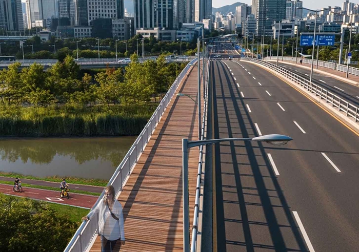 홍제천과 불광천을 지나는 ‘연남교’와 ‘중동교’가 보도 폭을 대폭 넓혀 걷기 편한 다리로 거듭난다. 서울시는 경의선 선형의 숲 조성과 함께 숲의 주요 연계 통로인 연남교와 중동교의 보도폭을 기존 대비 4배 이상 확장해, 디지털미디어시티역에서 경의선 숲길까지 도시 생태축 연결하는 등 보행환경을 대폭 개선한다. 마포구 성암로 내 연남교와 중동교는 서울 지하철 가좌역과 디지털미디어시티역 인근에 위치한 길이 약 60m, 폭 20m 규모의 교량이다. 두 교량은 경의선 선형의 숲과 인근 철도역, 녹지축을 연결하는 핵심 거점이지만 보도가 각각 0.8m(연남교), 0.6m(중동교)로 매우 협소해 시민 불편이 많았다. 유모차, 휠체어 등 교통약자나 자전거 이용 시에는 교량 진입 자체가 어려웠으며, 보행자끼리 마주할 때 역시 한쪽이 멈춰 서거나, 차도 가장자리로 내려가야 하는 등의 불편이 있었다. 시는 이번 사업을 통해 연남교와 중동교 상부 보도를 양방향 통행이 가능한 데크형 구조물로 개조해 보행폭 2.5m 내외로 확장한다. 충분한 보행 공간을 확보함으로써 반복되던 병목 현상을 해결하고 단절된 보행 흐름을 개선하고자 했으며, 차량 방호울타리‧안전난간을 새로 설치해 보행자 안전을 강화할 계획이다. 특히, 이번 확장 설계는 단순한 보도 폭 확장에 그치지 않고 하천변 진입로 구간도 함께 정비해 보행 편의성을 세밀하게 개선한다. 하천변(홍제천) 진입 구간은 보도폭이 1m 미만으로 매우 좁은 데다가 신호를 기다리는 시민들과 자전거, 유모차, 보행자 등이 뒤섞여 안전사고 우려가 컸던 곳이다. 이에 시는 그간 공간 정비 요구가 지속돼 왔던 하천변 진입 보도구간을 확장해 보행 편의성을 높이고 안전 사고를 방지하고자 한다. 금번 공사는 경의선 선형의 숲 공사 일정과 연계해 ’25년 12월 준공을 목표로 추진한다. 시는 이번 사업을 통해 경의선 선형의 숲과 연남동, 가좌역, 디지털미디어시티역 등 주요 생활거점 간의 ‘원스톱 보행 네트워크’를 완성할 계획이다. 단절된 도시 녹지축 연결을 통해 지속가능한 도시환경 조성에도 기여할 것으로 기대하고 있다. 경의선 선형의 숲 조성 사업은 도시 생태축 복원 사업으로, 기존 경의선 철로 주변의 유휴 공간을 시민을 위한 보행로·쉼터·녹지 공간 등으로 탈바꿈하는 사업이다. 연남교와 중동교는 이 생태축의 중요한 연계 통로다. 김창규 서울시 균형발전본부장은 “도시숲은 숲을 어떻게 연결하고 활용할지가 완성도를 좌우한다”면서 “이번 연남교·중동교 확장은 단순한 인프라 확장이 아니라 시민의 일상과 생태가 이어지는 ‘도시 흐름의 복원’이라는 점에서 큰 의미가 있다”고 밝혔다. 이어 “앞으로도 숲길, 하천, 교량 등 도시 공간을 유기적으로 연결해 시민 누구나 걷기 편한 서울을 만들어 나갈 것”이라고 강조했다.
