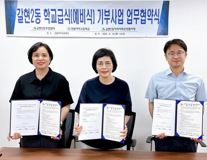 서울 은평구는 갈현2동과 지역사회보장협의체가 지난 19일 선일여자고등학교 교장실에서 ‘학교급식 예비식 기부사업’을 추진하기 위한 업무협약을 체결했다고 밝혔다.이번 협약은 학교급식(예비식)을 지역사회와 나누는 기부사업으로 ▲자원의 선순환 실현 ▲탄소배출 감축 ▲폐기비용 절감 등 다양한 효과를 거둘 것으로 기대된다. 무엇보다 건강한 식생활이 필요한 취약계층에 따뜻한 한 끼를 제공할 수 있다는 점에서 의미가 크다.선일여자고등학교는 버려질 수 있는 예비식을 지역사회에 환원해 음식물 쓰레기를 줄이는 데 앞장선다. 갈현2동 지역사회보장협의체는 도움이 필요한 복지사각지대 가구를 발굴해 취약계층 등에게 당일 요리한 신선한 예비식을 전달한다. 이를 통해 지역 내 자원이 선순환하는 실질적인 복지 지원을 할 예정이다.서진영 갈현2동 지역사회보장협의체 위원장은 ”공공과 민간이 함께 자원을 공유하고 연계해 단단한 복지안전망을 만들겠다“며 ”작은 밥상 하나가 이웃에게 큰 힘이 될 수 있도록 꾸준히 노력하겠다“고 전했다.황성자 선일여자고등학교장은 “학생들에게 제공되는 급식이 단순히 학교에서 끝나는 것이 아니라, 지역사회에서 어려운 이웃들에게까지 이어질 수 있다는 점이 참으로 의미 있다”며 “이번 협약을 통해 학생들이 나눔과 배려의 가치를 직접 배우고 실천할 수 있기를 바란다”고 말했다.이보경 갈현2동장은 “지역 내 학교와 지역사회가 함께 힘을 모아 주민들을 지원할 수 있어 뜻깊다”며 “앞으로도 주민의 안전과 복지를 위해 촘촘한 돌봄을 이어가겠다”고 밝혔다.갈현2동은 이번 협약을 계기로 주민들과 관내 학교, 기관이 함께 참여하는 지속 가능한 나눔 문화를 확산시켜 나갈 계획이다.