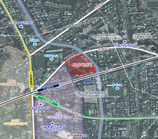 서울시는 2025년 08월 20일 제13차 도시계획위원회를 개최하여 동대문구 신설동 91번지 일대에 역세권 장기전세주택 건립을 위한 도시정비형 재개발사업 정비구역 지정 및 정비계획 결정(안)에 대하여 “수정가결” 했다고 밝혔다. 대상지는 1호선, 2호선, 우이신설선이 지나는 신설동역세권과 동대문지역중심지와 청량리·왕십리 광역중심지 사이에 위치하고, 주변에는 청계천과 합류하는 성북천이 입지하고 있으며, 도시정비행 재개발사업을 통해 주거환경 및 도시경관을 개선하여 신설동역세권 일대에 새로운 도시환경을 조성하고자 한다, 정비구역 17,414㎡ 신규 지정하고, 공동주택 획지 15,038.7㎡에 아파트 4개동, 지하4층 ~ 지상38층(최고높이 106m이하) 규모로 총 609세대(장기전세주택 183세대, 재개발임대주택 37세대)를 건립할 예정이며, 장기전세주택중 50%는 신혼부부를 위한 ‘미리내집’ 으로 향후 공급될 계획이다. 정비계획은 신설동역 역세권지역의 주거환경 및 도시경관을 개선하고자 ‘도심 속 보행중심의 수변친화형 주거복합단지 조성’ 을 목표로 주변 성북천변 및 신설동역을 연계하는 유기적 보행동선 체계 구축, 사업지 주변 한빛로와 성북천변 가로활성화를 조성, 성북천변과 연계하는 수변감성도시를 조성하는 계획을 수립했다. 세부 내용으로 사업지 주변 성북천과 신설동의 보행 동선 연계를 위해 단지내 공공보행통로, 보도형 전면공지를 조성하고, 주요 연결 공간에는 열린 공개공지를 조성하여 성북천변과의 접근성 및 연계성을 향상토록 계획했다. 또한, 한빛로와 성북천변에는 생활가로 할성화를 위해 저층부에 커뮤니티 및 근린생활시설을 배치하고, 성북천변과의 연계 및 활력을 도모하여 수변친화적 생활공간을 조성했다. 서울시는 “이번 신설동역세권(신설동 91번지 일대) 장기전세주택 도시정비형 재개발사업 정비구역 지정 및 정비계획 수립은 강북권 복합역세권에 양질의 장기전세주택과 ‘미리내집’ 을 공급하면서 성북천과 연계한 새로운 수변 감성 도시가 조성될 것으로 기대된다.” 고 밝혔다.