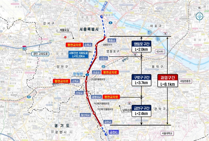 서울시는 오는 8월 29일 24시부터 광명교 지하차도, 8월 31일 24시부터 오금교(동측) 지하차도의 양방향 차량 통행을 전면 중단하고, 두 지하차도를 평면교차로로 전환한다고 밝혔다. 평면화 공사는 2025년 8월부터 2026년 3월까지 약 7개월간 진행된다. 광명교·오금교(동측) 지하차도 평면교차로 전환은 서부간선도로 일반도로화 사업의 일환으로, 지난 6월 15일 오목교(동측) 지하차도(일직 방향) 폐쇄에 이어 추진되는 두 번째 평면화 공사다. 이후 2026년 상반기 고척교 지하차도까지 순차적으로 평면화가 진행될 예정이다. 시는 현재 양평동(목동교)~가산동(금천교) 8.1km 구간에 보도와 녹지 공간을 조성하는 ‘서부간선도로 일반도로화 및 친환경공간 조성공사’를 2023년 7월부터 본격 추진하고 있다. 이번에 폐쇄되는 광명교·오금교(동측) 지하차도는 양방향 4개 차로 모두 통제되며, 차량은 신설된 상부 평면교차로 4개 차로(일직방향 2, 성산방향 2)를 이용하게 된다. 각 교차로에는 가로형 3색 신호등 4개소가 설치되어, 차량은 신호에 따라 안전하게 통행할 수 있다. ‘서부간선도로 일반도로화 및 친환경공간 조성공사’는 서부간선도로로 단절된 지역을 연결하고, 보행자 중심의 안전한 도로환경을 조성하기 위한 것으로, 기존 입체교차로 8개소 중 4개소를 평면교차로로 전환되는 것이 핵심이다. 목동교, 신정교, 사성교, 철산교 등은 현재와 같이 기존 지하차도가 유지되며, 오목교, 오금교, 고척교, 광명교 등은 평면교차로가 된다. 안대희 서울시 도시기반시설본부장은 “보행자 중심의 안전한 도로 환경 조성과 지역간 단절 해소, 지역 균형발전에 기여할 것으로 기대된다”며, “공사 구간을 지나는 차량은 서행 운전해 주시고, 가능하면 우회도로 이용을 부탁드린다”고 당부했다.