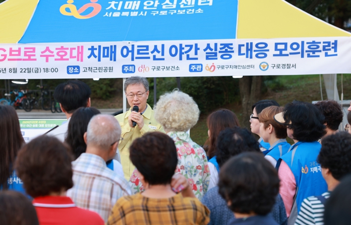 구로구가 8월 22일 오후 7시 고척근린공원에서 ‘G(지)브로(집으로) 수호대’ 야간 치매 실종 대응 모의훈련을 진행했다.이번 훈련은 경찰, 자율방범대, 치매극복봉사단, 주민 등 약 150명이 참여한 가운데 실종 상황을 가정해 수색·신고·출동 등 전 과정을 실전처럼 훈련하는 방식으로 이뤄졌다.모의훈련 전에는 치매 인식 개선 캠페인도 함께 열려 실종 예방 퀴즈와 치매 인지 프로그램 등을 통해 주민들의 참여를 유도했다.‘G(지)브로 수호대’는 치매 환자 실종에 대비해 민·관·경이 협력하는 구로구만의 특화 대응 조직으로, 특히 야간 대응에 집중해 실질적인 지역 안전망 역할을 한다.장인홍 구청장은 “이번 훈련이 지역사회 전체의 대응 역량을 높이는 계기가 되길 바란다”며 “앞으로도 치매 환자와 가족이 안심할 수 있는 환경을 만들어가겠다”고 말했다.