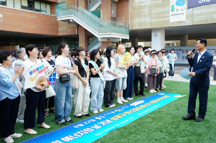 서울 성북구가 제22회 에너지의 날을 맞아 민·관·학 합동 캠페인을 실시했다.이번 캠페인은 8월 22일 성북구민이 많이 찾는 성신여대 하나로거리에서 진행됐으며, 성북구민의 효율적인 에너지 생활 실천과 2050 성북형 탄소중립 실현을 목표로 했다.에너지의 날은 2003년 8월 22일 그해 최대 전력소비를 기록한 날을 계기로 지정됐다. 매년 ‘에너지의 날-불을 끄고 별을 켜다’라는 이름으로 에너지 절약과 기후변화 대응의 필요성을 알리는 범국민적 축제가 열리고 있다.최근 폭염 위기경보가 ‘심각’ 단계로 발령되는 등 에너지 소비 증가와 전력 수급 어려움이 지속되는 가운데, 성북구는 43만 구민을 대상으로 에너지 위기 인식을 확산하고 생활 속 실천을 장려하기 위해 캠페인을 마련했다.이번 캠페인에는 주민주도 탄소중립 실천 단체인 성북구 녹색환경실천단과 인근 동 주민자치회 환경분과가 참여했다. 또한 성북구청 환경과 직원, 국민대학교 디에코 환경동아리, 성북구 청소년지원센터 꿈드림 학생들도 함께했다.캠페인 참여자들은 성북구민에게 ‘시원한 여름나기 부채’를 나눠주며 에코마일리지 가입과 효율적인 에너지 생활 실천을 홍보했다. 아울러 △저녁 9시 5분간 소등 △적정 실내온도 26도 유지 △낮 2시 2℃ 온도 올리기 △선풍기 대신 부채 사용하기 등 문구가 적힌 피켓을 들며 탄소중립 실천 의지를 알렸다.성북구는 캠페인 외에도 구민 모두가 에너지의 중요성을 인식하도록 ‘에너지 삼행시 짓기 이벤트’도 함께 진행하고 있다.이승로 성북구청장은 “더운 날씨에도 캠페인에 참여해 주셔서 감사드리며, 가속화되는 에너지 위기에 대응하기 위해 2050 성북형 탄소중립 실천에 함께 힘써 달라”고 말했다.