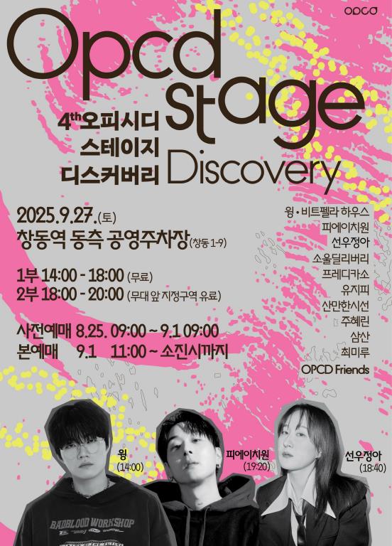 서울 도봉구가 지역 대표 청년 음악 축제인 ‘OPCD STAGE’를 오는 9월 27일 창동역 동측 공영주차장에서 개최한다.‘OPCD STAGE’는 2022년 ‘OPCD 위크’로 출발해 이듬해 ‘OPCD STAGE’로 발전, 매년 주제를 달리하며 색다른 무대를 선보이고 있다.지역 내 신진 음악인부터 자이언티, 기리보이, 스윙스, 카더가든 등 프로 음악인의 무대까지 폭넓은 공연으로 매해 3,000여 명의 관객을 불러 모으고 있다.올해 주제는 ‘발견’이다. 구 관계자는 “신진 음악인은 자신만의 음악 정체성을, 관객은 새로운 음악적 경험을 발견한다는 의미를 담고 있다.”라고 설명했다.행사는 1, 2부로 나눠 진행된다. 먼저 1부 첫 무대는 비트박서 윙이 장식한다. 윙은 소속 그룹 비트펠라하우스와 함께 행사의 시작을 알릴 예정이다.이어 소울딜리버리, UGP, 프레디카소 그리고 신진 아티스트 오픈창동 프렌즈(OPCD Friends)의 무대가 펼쳐진다. 무대에서는 이들이 함께 만든 카페음악을 선보인다. 앞서 이들은 ‘오픈창동 소울 블렌드(Soul Blend)’에 참여, 지역 카페와 협업해 음악을 만들었다.1부 마지막 무대는 한국대중음악상 신인상 수상·후보자인 ‘산만한 시선’, ‘최미루’, ‘주혜린’, ‘삼산’과 오픈창동 프렌즈의 공연으로 꾸며진다.2부부터는 프로 음악인 선우정아와 pH-1의 무대가 펼쳐진다. 앞서 1부에서 신진 음악인들이 뜨겁게 달군 행사 분위기를 한층 더 끌어올린다.2부는 유료티켓 구매 후 관람이 가능한데, 티켓 구매는 9월 1일 오전 11시부터 인터파크에서 가능하다.티켓 비용은 1만 원, 예매수수료는 2천 원이다. 판매대금은 연말 전액 사회복지공동모금회로 기부된다.이날 행사장 한켠에는 관람객 모두가 즐길 수 있는 다양한 부스가 운영된다. 그래피티, 감성소품, 인생네컷, 캐리커처, 푸드트럭 등의 부스가 마련된다.오언석 도봉구청장은 “작은 공연으로 시작해 현재는 ‘OPCD STAGE’가 지역을 대표하는 청년 음악 축제로 발돋움했다. 앞으로 지역 내 신진 음악인들과 프로 음악인들이 한데 어우러지는 무대를 더 많이 마련해 나가겠다.”라고 말했다.