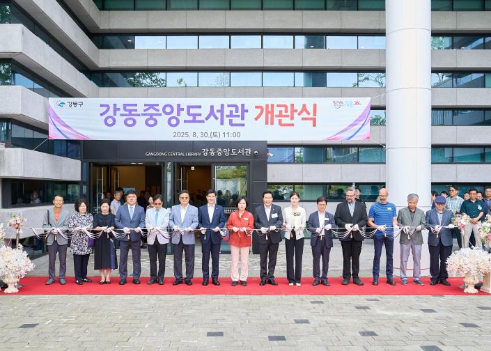 강동구는 지난 8월 30일 강동중앙도서관 개관식을 개최했으며, 8월 31일부터 정식 운영을 시작했다고 밝혔다.지난 16일부터 시범 운영을 시작한 강동중앙도서관은 첫 주말 동안 1만 3천여 명이 넘는 주민들이 방문하며 성황을 이뤘고, 일 평균 방문객 수 4,500여 명을 기록했다. 약 12만 권에 달하는 개관 장서를 보유한 만큼 오롯이 독서를 즐기기 위해 방문한 주민은 물론 LP 음악을 감상하거나 아트북, 팝업북 등 예술 서적을 둘러보고 미디어아트와 열린 미술관 등 문화 공간을 체험하려는 가족 단위 방문객도 많았다.개관식은 8월 30일 오전 11시, 강동중앙도서관 지하 2층 다목적홀에서 개최됐다. 이수희 강동구청장을 비롯해 도서관 관계자, 지역 주민 등 200여 명이 참석했고, 개관을 축하하기 위해 강동구와 협약을 맺은 미국 앤아버공공도서관 관장(Mr. Eli Neiburger) 및 이케아 강동점 점장(Mr. Magnus Norberg) 등이 참석해 자리를 빛냈다.지난 8월 29일 협약을 맺은 미국 앤아버공공도서관은 강동중앙도서관에 150권의 신간 도서를 기증했으며, 향후 지속적으로 상호교류 프로그램을 이어갈 계획이다. 이케아 강동점은 지난 7월 기부 서약을 통해 강동중앙도서관에 의자, 스툴 등 다량의 가구를 지원했다.강동구는 강동중앙도서관의 개관을 통해 주민들이 독서문화뿐 아니라 고품격 인문·예술을 일상 가까이서 즐길 수 있도록 다양한 콘텐츠와 프로그램을 제공해 생활 속 지식·문화 인프라 확충에 힘쓸 계획이다.이수희 구청장은 “강동중앙도서관은 단순히 책을 빌리는 공간을 넘어, 주민들이 소통하고 배우며 문화를 나누는 복합문화공간이 될 것”이라며, “강동중앙도서관이 강동구의 인문·예술·문화의 수준을 한층 높이는 대표적인 지역의 랜드마크가 되어 구민이 만족하고 자부하는 문화도시 강동의 한 축을 담당하는 도서관으로 자리매김할 수 있도록 최선을 다하겠다”라고 전했다.한편, 시범 운영 기간 일부 제한됐던 도서 대출 및 반납 서비스는 정식 개관일인 8월 31일부터 모두 이용할 수 있다. 8월 30일 소설가 김영하의 명사 특강을 시작으로 평소 만나보고 싶었던 명사와의 만남, 테너 김민석 등이 출연하는 디토 오케스트라 등 다양한 프로그램도 준비되어 있다.