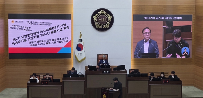 문성호 서울시의원(국민의힘, 서대문2)이 제322회 임시회 시정질문에서 윤종장 서울시 복지실장을 통해 제2기 뇌병변장애인 기본계획 세부사업계획에 대해 논의하며 보완해야 할 부분을 짚으며 그 필요성과 과제 수행을 위해 박차를 가할 것을 당부했는데, 특히 중증 뇌병변장애인 24시간 돌봄시설 확충 사업은 분명한 독립성을 가져야 한다는 점과 맞춤형 보조기기 지원 확대 사업에 관한 중함을 설파했다. 문성호 시의원은 윤종장 복지실장과 함께 중증 뇌병변장애인 24시간 돌봄시설 확충에 관해 논의하며 “중증 뇌병변 와상장애인이 부모 또는 보호자의 유고시에도 걱정 없이 필요한 의료와 돌봄 서비스를 받을 수 있는 24시간 돌봄 시설은 확실히 그 수요에 비해 공급이 따라가지 못하는 상태다. 이번 확충 사업이 진행됨에 있어 매우 감사한 일.”이라며 추진에 대한 감사의 인사를 전했다. 이어서 문성호 시의원은 “하지만 추진 계획을 상세히 검토한 결과, 은평구에 소재한 서울시립 평화로운 집 별관 신축을 통해 전담시설을 확충하겠다고 밝힌 바 있는데, 이는 자칫하면 평화로운 집의 시설 보강 및 증축으로만 이루어질 우려가 있다.”며 확실하게 새로이 구축하는 시설이자 독립적인 사업임을 당부했으며, “평화로운 집 역시 훌륭하고 질 좋은 돌봄으로 많은 와상장애인과 가족들에게 사랑받고 있어 시설이 부족한 것은 잘 알고 있다. 하지만 본 사업의 핵심은 단순히 가정에서 독립하는 것이 아닌, 부모 또는 보호자 유고 시 확실한 돌봄 대응이 가능한 시설을 구축하는 것이 목표인 만큼 기존 시설과는 조금 다른 양상을 지닐 필요가 있다.”며 설명을 이어갔으며, 별관과 신축의 차이를 위해 PC게임 ‘스타크래프트’ 테란 종족의 부속건물 시스템을 예로 들었다. 덧붙여 문성호 의원은 본 사업이 본래 계획 상에는 존재하지 않았던 ‘학술용역’ 단계가 왜 갑자기 들어섰는지에 대해 논의했으며, 윤종장 실장은 기존 계획이 큰 걸음으로 논의된 터라 기존에 거론되지 않았는데, 새로이 신축을 위한 설계 및 운영에 관련된 실시를 위한 연구용역이라 설명했다. 이에 대해 문성호 의원은 “누군가의 삶이 걸린 사업인데 세부적인 내용을 설명하지 않고 넘어가니 애타게 기다리는 이에게는 마치 더 지연되는 절망으로 다가오기 마련이다. 신속하게 진행될 수 있도록 하고, 자세한 경과를 알 수 있도록 설명의 자리를 마련하기 바란다.”라며 지적했다. 또한 문성호 의원은 뇌병변장애인 맞춤형 보조기기 지원 사업이 1기 때부터 진행되어 강화된 사업임에도 불구하고 예산 확보가 충분치 않은 점에 대해 깊은 아쉬움을 표했으며, 남은 기간 기존 필요 예산액 8억 원을 확보하는데 성공한다면 2028년까지 누적 약 400여 명의 중증 뇌병변장애인이 맞춤형 보조기기를 부여받을 수 있다는 계산을 바탕으로 예산 확보의 필요성에 대해 윤 실장은 물론 회의장에 재석해 있었던 기조실장을 향해서도 강한 당부를 보냈다. 문 의원과 윤 실장이 맞춤형 보조기기를 논의하던 중, 비슷한 맥락으로 중증 뇌병변장애인의 성장 및 체형 변화 등 신체 변형에 따라 맞춤형으로 의료 및 재활 치료가 이루어질 수 있는 자세유지기구센터 설치에 대해서도 논의가 이어졌다. 문 의원은 보조기기는 물론, 근본적으로 신체를 유지할 수 있는 자세유지기구센터의 설치도 시급한 문제임을 주장하며, 현재 센터를 설립할 공간과 원활한 운영을 위한 규모의 장소를 먼저 빠르게 물색하고 이를 추진하기 위한 예산을 확보하는 것이 시급함을 당부했다. 문 의원은 특히 연차별 투자수요 계획에서 예산이 인건비와 운영비, 사업비만을 책정한 것에 대해 “시설이나 장소를 구입하게 될 수도 있으므로 조금 더 광범위한 예산 계획이 산출되어야 할 것으로 보인다.”며 설명했으며, “인천시가 운영 중인 자세유지기구센터를 적극적으로 벤치마킹할 필요가 있다.”며 윤 실장을 독려했다. 마지막으로 문 의원은 “제11대 의회와 민선8기도 이제 저물어가고 있다. 우리의 시간은 참 빨리 흘러가지만, 이러한 개선과 보완을 기다리는 시민의 시간은 매우 느리게 흘러간다. 우리의 일은 이러한 시간차를 줄이는 데 힘을 쏟는 것 뿐이다.”라며 정당과 정치를 떠나 마땅히 지켜야 할 이를 위한 사업에 힘을 함께 뭉치기를 당부하여 질의를 마쳤다.
