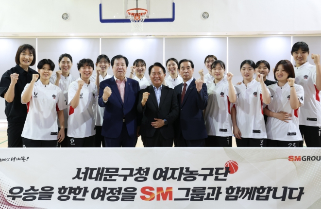 서대문구는 2일 북아현문화체육센터 대체육관에서 SM그룹(회장 우오현) 및 서대문구체육회(회장 최진교) 관계자, 서대문구청 여자농구단 박찬숙 감독과 선수단이 참석한 가운데 ‘농구단 후원 협약’을 체결했다고 밝혔다.SM그룹은 이번 후원 협약을 통해 선수단 훈련비 등을 지원하는 동시에 지역 체육발전 및 저변확대에 힘을 보탤 예정이다.2023년 3월 창단된 서대문구청 여자농구단은 지난해 전국대회 4연속 전승 우승을 달성하고 꿈나무 육성을 위한 재능기부 농구 교실 등의 지역사회 공헌 활동에도 적극 나서며 서대문구의 자랑이자 주민들로부터 사랑받는 농구단으로 성장하고 있다.SM그룹의 공식 후원 협약으로 안정적인 팀 운영과 경기력 향상이 기대되는 농구단은 다음 달 17일 부산에서 개최되는 제106회 전국체육대회에 서울시 대표로 출전해 2년 연속 금메달에 도전한다.지난해 4월 신촌역사로 사옥을 이전하며 인근 지역경제 활성화에도 앞장서고 있는 우오현 SM그룹 회장은 “이번 후원으로 서대문구청 여자농구단이 더 강하고 단단한 팀으로 도약하는 계기가 되길 바라며 SM그룹 임직원들도 농구단이 앞으로 써 내려 갈 승리의 역사에 함께 하겠다”고 기대를 밝혔다.이성헌 서대문구청장은 “SM그룹의 후원에 감사하며 스포츠는 지역사회의 활력과 화합을 이끄는 중요한 매개체인 만큼 구 체육회와 힘을 모아 주민과 함께하는 농구단으로 더욱 성장할 수 있도록 최선을 다하겠다”고 말했다.(1) SM그룹 서대문구청 여자농구단 후원 협약식에서 (왼쪽부터) 박찬숙 감독, 우오현 SM그룹 회장, 이성헌 서대문구청장, 최진교 서대문구체육회장이 기념 촬영을 하고 있다.(2) SM그룹 서대문구청 여자농구단 후원 협약식에서 우오현 SM그룹 회장, 이성헌 서대문구청장, 최진교 서대문구체육회장(앞줄 왼쪽 세 번째부터)과 박찬숙 감독(뒷줄 왼쪽) 및 선수들이 파이팅을 하고 있다.(3) SM그룹 서대문구청 여자농구단 후원 협약식에서 우오현 SM그룹 회장, 이성헌 서대문구청장, 최진교 서대문구체육회장(둘째 줄 왼쪽 다섯 번째부터)과 박찬숙 감독(뒷줄 왼쪽) 및 선수, 관계자들이 파이팅을 하고 있다.