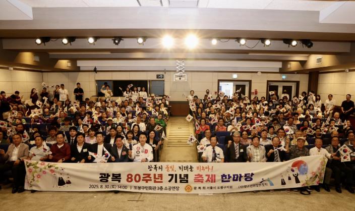 서울 도봉구가 지난 8월 30일 도봉구민회관 3층 소공연장에서 열린 광복 80주년 기념 ‘광복의 불빛, 미래를 비추다’ 행사가 성황리에 막을 내렸다고 밝혔다.광복회 도봉구지회가 주관한 이번 행사는 광복의 가치를 기리고 미래세대와 그 의미를 나누는 자리로, 어린이부터 어르신까지 200여 명이 참석했다.광복회원과 가족들은 물론, 역사에 관심 있는 일반 구민들이 대거 참석해 모두 다 함께 광복의 의미를 되새겼다.이날 행사는 1, 2부로 나눠 진행됐다. 먼저 1부 행사는 장애아동들의 공연으로 시작됐다. 공연은 장애아동들의 ‘컵타’ 무대로 꾸며졌다. 플라스틱 컵을 활용해 펼치는 리듬 퍼포먼스는 관객들에게 큰 감동을 선사했다.이후 표창 수여식이 진행됐다. 오언석 도봉구청장은 광복회원 2명(구청장 표창)과 모범청소년 4명(광복회 표창)에게 진심 어린 감사의 인사를 전한 뒤 표창을 수여했다.2부는 전통 장구 공연과 트로트 공연으로 막이 올랐다. 이후에는 김영주 광복회 도봉구지회장의 독립운동 역사 강연이 이어졌다. 강연에서 지회장은 생생한 독립운동의 이야기를 들려주며 우리의 역사의식을 일깨웠다.가족 단위 방문객들은 “아이에게 독립정신을 가르쳐줄 수 있어 좋았다.”, “공연도 재밌고 강연도 너무나 인상 깊었다.” 등의 소감을 전했다.오언석 도봉구청장은 “광복 80주년을 맞아 이렇게 많은 구민들과 함께 독립정신을 나눌 수 있어 뜻깊다.”라며, “보훈 가족들이 지역사회에서 인정받고 예우받을 수 있도록 관련한 지원과 사업 추진에 더욱 힘쓰도록 하겠다.”라고 말했다.
