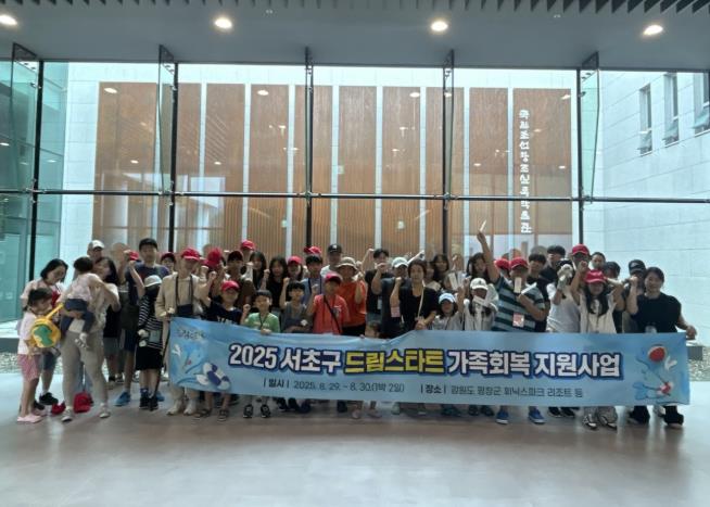서울 서초구는 지난 8월 29일부터 30일까지 1박 2일간 강원도 평창군 일원에서 ‘드림스타트 가족회복 지원사업’을 개최했다고 밝혔다.가족회복 지원사업은 서초구 드림스타트 사업의 특화 프로그램으로 취약계층 아동과 가족이 함께 여가시간을 보내며 정서적 안정을 찾고 유대관계를 형성할 수 있도록 마련됐다. 이번 행사는 드림스타트 사업대상 아동과 가족 21가구 총 75명이 일상에서 벗어나 자연 속 다양한 활동을 통해 편안함을 만끽하고 가족 간 화합도 다지는 시간으로 진행됐다.참가자들은 휘닉스파크 리조트에서 워터파크 물놀이를 즐기고 가족 단합 레크리에이션으로 교감을 나눴다. 또 대관령 양떼목장에서 건초 주기 체험으로 자연과 가까워졌고 지난 5월 재개관한 국립조선왕조실록박물관과 월정사 관광단지도 방문해 아이들의 눈높이에 맞춘 역사·문화 체험도 경험했다.올해로 4회째를 맞은 이번 행사는 단순한 여가활동을 넘어 자연 속 힐링과 교육적 체험을 결합해 프로그램의 깊이를 더한 것이 특징이다. 특히 경제적, 시간적 여건으로 문화 체험이 어려웠던 취약계층 아동에게는 교과서 밖에서 배우는 생생한 배움의 장이, 부모에게는 자녀와 함께한 특별한 하루가 뜻깊은 추억으로 남았다.사업에 참여한 한 학부모는 “어려운 형편으로 휴가를 떠나기 어려웠는데 서초구에서 숙박과 식사, 체험까지 세심하게 준비해 주셔서 아이와 특별한 추억을 만들 수 있었다”며 감사의 마음을 전했다.한편 2015년부터 시작된 서초구 드림스타트 사업은 취약계층 아동이 건강하고 행복한 사회구성원으로 성장할 수 있도록 지원하는 사업으로, 현재 구는 지역 내 12세 이하 취약계층 아동 170여 명에게 포괄적인 복지서비스를 제공하고 있다. 거주지 동주민센터 또는 복지정책과로 신청 가능하며, 최종 지원대상은 가정방문 상담과 양육환경 점검을 거쳐 선정된다.전성수 서초구청장은 “드림스타트 가족회복 지원사업은 단순한 캠프를 넘어 부모와 아이가 함께 웃고 행복을 나누는 소중한 시간”이라며, “앞으로도 아이들의 건강한 성장을 위해 다채롭고 체계적인 돌봄 프로그램을 지속해 나가겠다”고 말했다.