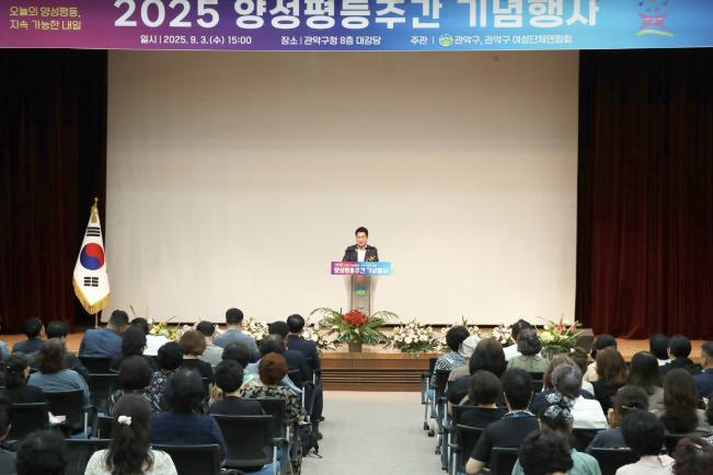 양성평등주간을 맞이하여 관악구가 지난 3일 관악구여성단체연합회와 공동 주관으로 ‘양성평등주간 기념행사’를 개최했다.양성평등주간은 우리나라 최초의 여성 인권 선언문인 ‘여권통문’이 발표된 9월 1일에 맞춰 매년 9월 1일부터 7일까지 실질적인 남녀평등 이념 구현을 목표로 운영되고 있다.이날 행사에는 박 구청장을 비롯해 여성단체회연합회 류서선 회장과 회원, 주민 등 200여 명이 참여해 양성평등의 가치와 실천 의지를 다졌다.먼저 구는 모범적인 양성평등 가치 실천과 양성평등 문화 확산에 기여한 유공자 11명에게 구청장 표창을 수여하고 노고에 감사를 표했다.이후 이어진 특강은 방송인 이성미 씨를 강사로 초빙해 참여자들의 관심을 끌었다. 교육은 ‘삶의 차별과 차이를 바라보는 태도에 따라 달라지는 삶의 질, 그리고 더 나은 세상을 향한 희망’을 주제로 진행돼 차별에 대한 경험과 삶의 지혜를 나눴다.본 행사가 끝난 후 ▲안심지킴이 ▲불법촬영시민감시단 ▲여성단체연합회 ▲관악경찰서 등 관계자들이 모여 ‘여성 폭력 피해 예방 캠페인’을 실시했다. 평소 불법 촬영 카메라 점검 활동을 펼치고 있는 이들은 ‘여성 폭력 없는 안전한 사회’를 만들기 위해 구민들의 적극적인 관심과 동참을 촉구했다.아울러 행사장 내부에서는 폭력 피해 여성의 자립을 지원하는 공동작업장 ‘봄봄’에서 제작한 홈웨어, 가방 등 상품 판매도 진행됐다.한편 구는 이번 행사를 위해 서울시 여성가족재단에서 지정한 ‘오늘의 양성평등, 지속가능한 내일’과 관악구 양성평등네트워크에서 제안한 ‘다름을 이해하고 함께 성장하는 양성평등 관악구’ 두 개 슬로건을 함께 선정했다.이는 남성과 여성의 조화로운 발전으로 정치, 경제, 사회, 문화 등 다양한 분야에서 실질적인 남녀평등 이념을 실현하겠다는 구의 방침이다.박준희 구청장은 “지난해 ‘여성친화도시’로 재지정된 이후 성평등 사회, 여성의 안전 보장을 위해 선도적인 양성평등 시책을 중점 추진해 왔다”라며 “여성과 남성 누구나 안심하고 행복하게 살아갈 수 있는 관악구를 만들기 위해 최선을 다하겠다”라고 말했다.