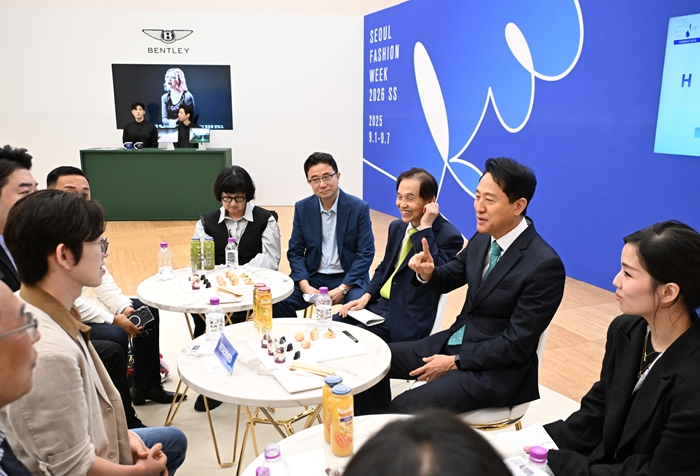 오세훈 서울시장이 5일 오후 12시, 동대문디자인플라자(DDP) 아트홀 1관에서 열린 `2026 S/S 서울패션위크`에서 테크 꾸뛰르 아트쇼(Tech Couture Art Show) ‘한나신 패션쇼’에 참석했다. 25주년을 맞은 ‘서울패션위크’는 오는 7일(일)까지 DDP를 비롯해 문화비축기지, 흥천사(성북구 돈암동) 등에서 열린다. 이번에는 인공지능 기술과 패션 융합, 협업을 통해 패션산업의 미래를 모색하는 자리로 마련된다. 오 시장은 웨어러블 로봇 기술 기업 ‘엔젤로보틱스’ 설립자 KAIST 공경철 교수, 3D 프린팅 제작 기술을 보유한 ‘쎄타텍’ 권영삼 대표와 함께 인공지능(AI) 로봇, 3D 프린팅 기술이 패션과 접목해 탄생한 컬렉션을 참관했다. 이날 공 교수는 산업 재활 보조 슈트, 보행 재활 로봇을 한나신 브랜드와 협업한 작품을 무대에 올렸으며, 권 대표는 첨단 티타늄 소재를 한나신의 패션과 조합해 선보였다. 오 시장은 “서울패션위크가 이젠 디자이너의 창의성과 상상력은 물론 AI와 첨단기술, 나아가 약자 배려와 안전까지 아우르는 무대로 성장하고 있다”라며 “매년 글로벌 패션계가 주목하는 만큼 사회적 가치도 함께 담아내는 K-패션의 세계적 성장 발판이 되길 기대한다”고 밝혔다.