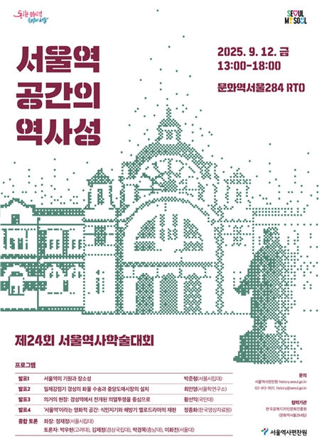 서울역사편찬원(원장 이상배)이 9월 12일 오후 1시, 문화역서울284에서 `제24회 서울역사학술대회`를 개최한다. 이번 학술대회는 ‘서울역 공간의 역사성’을 주제로 1900년 남대문 정거장 개통부터 현재까지 125년간 서울의 ‘관문’ 역할을 해온 서울역의 다채로운 역사를 조명한다. 이번 학술대회는 개장 100주년을 맞은 옛 경성역 건물인 ‘문화역서울284’에서 열려 공간적 의미를 더한다. 학술대회는 서울역이 단순한 교통시설이 아닌 역사의 무대였음을 보여주는 4개 주제발표로 구성된다. 박준형 서울시립대 교수는 남대문정거장에서 경성역으로 변화하는 과정 속, 사람들의 생활공간이 어떻게 달라졌는지 발표한다. 최인영 서울학연구소 연구교수는 서울역 주변에 형성된 수산시장과 중앙도매시장 등 물류 상권의 역사를 다룬다. 주목할 만한 발표는 광복 80주년을 맞아 더욱 특별하게 다가오는 황선익 국민대 교수의 ‘의거의 현장 : 경성역에서 전개된 의열투쟁’이다. 1919년 만세 시위부터 강우규 의거, 의열단과 공명단의 활동까지, 독립운동의 중요한 무대였던 서울역을 재조명한다. 이외에 정종화 한국영상자료원 학예연구팀장은 식민지 시기와 해방기 영화 속에서 멜로드라마의 단골 배경으로 등장한 서울역의 문화적 상징성을 분석한다. 주제 발표 후 이어지는 종합토론에는 정재정 서울시립대 명예교수를 좌장으로 박우현 고려대 연구교수, 김제정 경상국립대 교수, 박경목 충남대 교수, 이화진 서울대 교수가 참여해 심층적인 논의를 이어간다. 학술대회는 관심 있는 누구나 현장 등록을 통해 무료로 참여할 수 있다. 학술대회 참여 후 만족도 조사에 참여한 시민에게는 기념품을 제공한다. 자세한 정보는 서울역사편찬원 누리집을 확인하거나 전화 문의하면 된다. 이상배 서울역사편찬원장은 “서울역은 교통, 물류, 독립운동, 문화가 모두 모였던 중심 공간으로, 서울 근현대 역사의 축소판이라고 볼 수 있다”라며 “일상 가까이에서 지나는 서울역에 담긴 역사적 의미를 새롭게 발견하는 기회가 되길 바란다. 앞으로도 서울의 다양한 역사를 재조명하는 학술행사를 계속해서 이어나가겠다”라고 말했다.