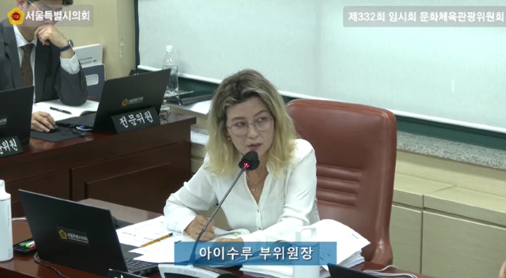 서울특별시의회 문화체육관광위원회 아이수루 부위원장(더불어민주당·비례)이 4일 열린 제332회 임시회 문화체육관광위원회 관광체육국 및 관광재단 소관 업무보고에서, 급증하는 한류관광 열풍 추세를 보완할 관광객 증가 대비 시설 개선의 필요성을 관광체육국에 강조하고, 예술관광 측면에서 외국인 관광객에 있어 ‘서울을 예술로 기억되는 도시’로 전파되도록 재단으로서의 역할을 다해줄 것을 주문했다. 본 상임위 질의에서 아이수루 부위원장은 최근 외국인에게 인기를 모으고 있는 넷플릭스에서 방영한 ‘케데헌(케이팝 데몬 헌터스)’를 언급하며, 영화 속 등장한 서울 명소에 외국인 관광객이 몰리고 있는 점을 긍정적으로 평가했다. 또한, 영화 속 종로구 낙산공원 성곽길, 서울타워, 뚝섬한강공원 등 영화 속 주인공처럼 서울 명소에서 외국인 관광객 간 인증사진 등을 통해 홍보 또한 잘 되고 있다며, 현재의 상황을 언급했다. 특히, 최근 2025년 7월 방한객의 경우, 한국을 찾는 외국인 관광객이 작년 같은 달보다 23% 증가한 상황으로, 7월간 방한한 올해 외국인 관광객 수치가 1천 만명이 넘어설 정도라며 한국의 한류 관광 효과 또한 극찬했다. 하지만, 아이수루 의원은 케데헌 덕에 외국인 핫플로 변모한 서울명소 중에 최근 보도자료(이데일리, 2025년 8월 29일자, “주차에만 2시간, 휴게실도 만석.. 사람에 치여 제대로 감상을 못했어요”)에 언급한 국립중앙박물관 사례를 언급하며, 급증하는 관광객으로 인한 주차나 편의시설 등의 부족 문제에 대한 대응책을 질의했다. 이에, 관광체육국장은 “서울 명소 가운데 국립중앙박물관에 많은 관광객이 오는 것은 반겨할 일이나, 이의 관리주체는 서울시가 아닌 문화체육관광부라면서, 이에 대한 우려 사항은 전달하겠다”며, “유료화 등에 대한 고민은 물론 관람객이 급증했을 때 편하게 관람할 수 있도록 편의시설 마련 등의 대응책 또한 고민 중에 있다”면서 현재 상황을 밝혔다. 아이수루 의원 역시, 이에 동의하며, “외국인이 방문하는 것은 좋으나, 손님을 마중하고 준비가 안된다면 의미가 없다”면서, “조금만 실수해도 큰 타격이 될 수 있으므로, 문체부뿐만 아니라, 서울시에서도 이에 대한 집중적인 관심을 가져줄 것”을 강조했다. 관광체육국에 이어 같은 날 질의한 문화재단 대표를 상대로 아이수루 부위원장은 올해 재연임한 서울관광재단 길기연 대표에서 축하 인사를 표하면서, 길 대표가 전문 인력 문제를 해소하고자, 목표로 하는 연간 200명 이상 전문가 양성을 위한 ’서울 예술관광 아카데미 설립‘ 에 대한 향후 지향하는 바 및 기대효과를 질의했다. 이에 길 대표는 “올해 시작한 사업이나 올해 예산을 받지 못해, 내년 10억을 요청한 상황”이라면서, “향후 예술 아카데미 등을 통해 큐레이터, 박물관 등 단순한 관광가이드에서 벗어나, 재교육을 통한 예술 분야 소양을 배양할 수 있도록 아카데미를 구성하고 있다”며 아카데미 설립에 열의를 보이기도 했다. 아이수루 의원은 “재단 차원에서 외국인들에게 만큼은 ”서울을 예술로 기억되는 도시“로 남을 수 있도록, 다시 찾는 매력 있는 도시 서울로 재탄생할 수 있도록 각별한 노력을 부탁드린다”며 질의를 마쳤다.