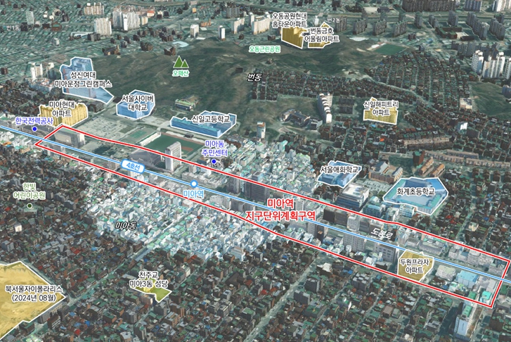 서울시는 2025년 9월 10일 제15차 도시·건축공동위원회를 개최하고, 미아역 일대 지구단위계획 결정(변경)(안)에 대하여 “수정가결” 했다고 밝혔다. 대상지는 4호선 미아역 및 주요 간선도로가 남북으로 위치하고 있으며, 도봉로 버스중앙차로 운영으로 대중교통 이용이 편리하며, 주변 저층주거지 밀집 지역에 다양한 규모의 정비사업이 활발하게 추진되고 있다. 이번 지구단위계획 변경은 2014년 지구단위계획 최초 수립 이후, 주변 정비사업 활성화에 대응하는 역세권 상업‧업무기능 강화방안 마련과 규제완화를 통한 자율적 민간개발 활성화를 위해 추진됐다. 주변 신속통합기획, 가로주택정비사업, 모아타운 등의 정비사업 추진에 대응하여, 도봉로 간선부에 건축물 용도완화 계획을 수립했으며, 이를 통해 미아역 일대 자족기능 확충과 지역상권 활성화를 유도했다. 건축물 용도완화 계획을 통해 너비 20m이상 도로에 접한 사업지 대상으로, 제3종일반주거지역 내 업무시설(오피스텔 제외) 및 판매시설의 바닥면적 제한을 완화한다. 아울러 규제로 작용했던 최대개발규모, 지정용도 폐지 및 높이계획을 완화하여, 보다 자율적으로 개발을 추진할 수 있는 기반을 마련했다. 높이계획 완화를 통해 규제로 작용할 수 있는 기준높이를 폐지하고, 최고/완화높이 계획으로 변경했다. 또한 도봉로를 관통하는 이면도로의 협소한 구조로 인한 보행 문제를 해소하고자, 건축한계선 등 대지 내 공지 계획을 수립했다. 이에 따라 솔매로 및 이면도로의 도로 폭이 확장되어, 주민들이 체감할 수 있는 보행환경 향상을 도모할 예정이다. 조남준 서울시 도시공간본부장은 “이번 미아역 일대 지구단위계획 변경을 통해 개발 여건이 개선되어 자유로운 민간 개발이 보다 활성화될 것으로 예상된다”며, “이를 통해 미아역 일대 역세권 기능을 강화하여 지역경제를 한층 활성화 할 수 있을 것으로 기대한다”고 말했다.