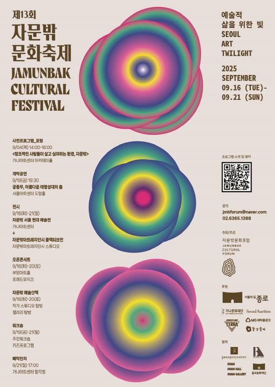 종로구는 9월 16일부터 21일까지 서울아트센터, 가나아트센터 등에서 `제13회 자문밖문화축제`를 개최한다.자하문 밖, 일명 ‘자문밖’ 지역(구기동, 부암동, 신영동, 평창동, 홍지동)은 뛰어난 자연경관과 풍부한 문화예술 인프라를 갖춘 종로의 핵심 문화예술 거점이다.2013년 (사)자문밖 문화포럼의 주관으로 시작된 자문밖문화축제는 지역 자연환경과 자생적 문화예술 자원을 바탕으로 예술인과 주민이 소통하며 함께 만들어 가는 지역 대표 축제로 성장했다.올해는 ‘예술적 삶을 위한 빛(Seoul Art Twilight)’을 주제로 한 전시, 공연, 포럼, 워크숍, 어린이 프로그램, 지역 탐방 등의 다채로운 내용으로 꾸민다. 건축가 김개천이 총감독을 맡았다.개막행사 ‘궁중무, 아름다운 태평성대의 춤’은 9월 19일 19시 30분 서울아트센터 도암홀에서 열린다. (사)정재연구회와 화동정재예술단이 역사와 예술, 동양철학의 미가 어우러진 무대를 선보이며, 리아(履雅) 김영숙(金英淑)이 해설을 담당한다.폐막잔치는 9월 21일 17시 가나아트센터 팔각정에서 진행한다. 서울예고 학생들의 특별 무대와 강미경 퀼텟의 재즈 공연, 아트 토크 등으로 축제를 마무리한다.전시는 가나아트센터에서 9월 16일부터 21일까지 열리는 ‘자문밖 서울 현대 예술전’, 자문밖아트레지던시 스튜디오에서 진행하는 ‘자문밖 아트레지던시 콜렉티브전’으로 구성했다.9월 13일 첫 운행을 시작하는 ‘종로 아트버스’를 타고 전문가와 함께 자문밖 일대를 탐방하는 아트투어도 축제의 백미로 꼽힌다. 17일, 18일, 20일에 참여할 수 있다. 참가비 2만원에는 가나아트센터와 토탈미술관 입장료, 해설 서비스, 가이드북이 포함된다. 종로구민은 30% 할인 혜택을 적용한다.이외에도 부암아트홀에서는 ‘우지연·안미현 듀오 콘서트’, ‘세종 피아노 트리오 콘서트’를, 포레드뮤지끄에서는 ‘임호열 라벨 탄생 150주년 기념 사이클 연주’를 선보인다.어린이들의 상상력과 창의력을 키우는 프로그램과 ‘나만의 컵 만들기’, ‘별자리 시계 워크숍’ 등 주민을 위한 예술 체험도 마련해 전 세대가 함께 즐길 수 있는 축제가 될 것으로 기대된다.정문헌 구청장은 “자문밖의 근사한 자연경관과 문화가 어우러진 특별한 시간을 경험해 보길 추천한다”라고 밝혔다.