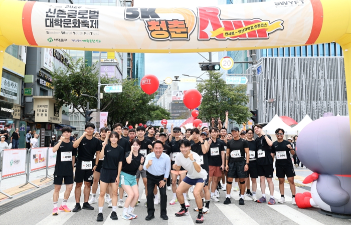 서대문구는 ‘2025 신촌 글로벌 대학문화축제’ 둘째 날인 13일 ‘5K 청춘 RUN’ 행사가 열려 축제장을 찾은 많은 시민의 눈길을 모았다고 밝혔다.외국인 유학생을 포함한 300여 명의 대학생들은 신촌 스타광장에 모여 준비운동을 한 뒤 연세대 캠퍼스를 거쳐 안산(鞍山) 자락길을 왕복하는 약 5km 코스를 달렸다.12일 ‘글로벌 거리 퍼레이드’와 공식 개막 행사로 문을 연 이 축제는 일요일인 14일 저녁까지 이어진다.13일 저녁에는 ‘서대문오케스트라 – 함신익과 심포니송’의 클래식 공연이, 14일에는 튀르키예, 인도, 에콰도르의 전통 공연을 감상할 수 있는 ‘지구촌 문화여행’과 ‘외국인 유학생 가요제 - Sing in 신촌’, 폐막공연 등이 잇따라 펼쳐진다.