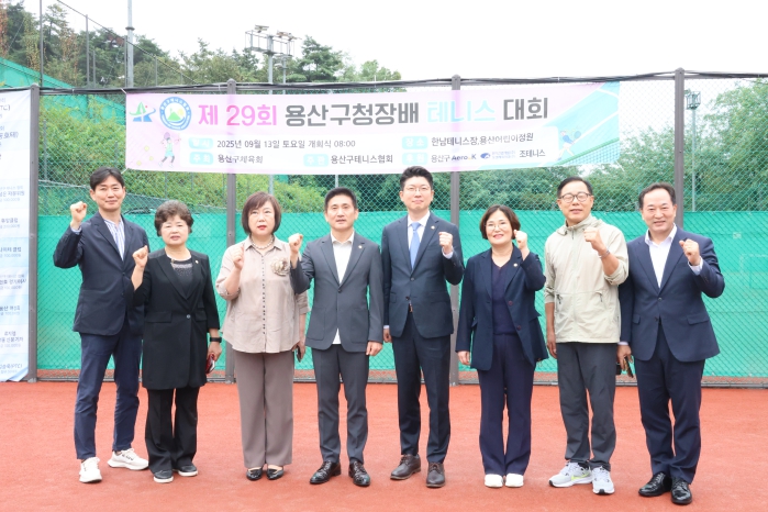 용산구의회는 9월 13일 한남테니스장에서 열린 제29회 용산구청장배 테니스대회 개회식에 참석했다.이번 대회는 용산구체육회가 주최하고 용산구테니스협회가 주관했으며, 관내 테니스 클럽회원 380여 명이 참여해 성황을 이뤘다.개회식은 유공자 표창 수여, 내빈 격려사, 선수대표 선서 순으로 진행됐으며, 대회 예선과 결선은 한남테니스장과 용산어린이정원 스포츠필드 테니스장에서 열렸다.김성철 의장은 축사를 통해 “구청장배 테니스대회는 29회를 이어오며 용산구 생활체육을 대표하는 권위 있는 대회로 자리매김해 왔다”며, “승패를 떠나 화합과 친목을 다지는 뜻깊은 자리가 되길 바라며, 참가자 모두 좋은 추억을 만들어 가시길 바란다”고 말했다.