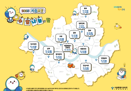 서울특별시교육청은 10월부터 11월까지 `2025 초등 수업 나눔의 달`을 통해 36만여 명의 학생이 주인으로 참여하는 수업 문화를 확산한다. 올해부터 서울 초등교육은 상반기 `수업 성장 학기`와 하반기 `수업 나눔의 달`을 정례화해, 수업 중심의 학교 문화를 강화하고 있다. `수업 나눔의 달`은 교원의 전문성을 협력적으로 확대하고, 본청과 교육지원청의 체계적 연대를 통해 ‘미래를 여는 협력교육’의 가치를 구현하는 대표 사업이다. 이번 `수업 나눔의 달`동안 11개 교육지원청은 지역 여건과 특색을 살린 다양한 수업 나눔 프로그램을 운영한다. 교육지원청별로 수업 공개, 협의회, 주제별 워크숍, 수업 나눔 한마당 등을 통해 교사들이 서로의 수업을 직접 보고 토론하며 성장할 수 있는 기회를 제공한다. 또한 ▲수석교사의 마이크로티칭과 교사 성장기 나눔 ▲주제별 특강과 체험형 부스 운영 ▲온라인 플랫폼을 통한 수업 자료 전시·공유 ▲사례집 발간과 수업 콘서트 등 교육지원청별 특색 프로그램도 함께 진행된다. 일부 프로그램은 다른 교육지원청 교사도 참여할 수 있어 ‘서울 교사 모두의 나눔 축제’로 이어진다. 정근식 서울특별시교육감은 “서울의 교실은 아이들이 배우고 교사가 성장하는 공간이어야 한다.”며 “혼자보다 함께할 때 수업 혁신은 더 커진다. 본청과 교육지원청이 협력적 수업 문화를 만들어 가겠다.”고 말했다.