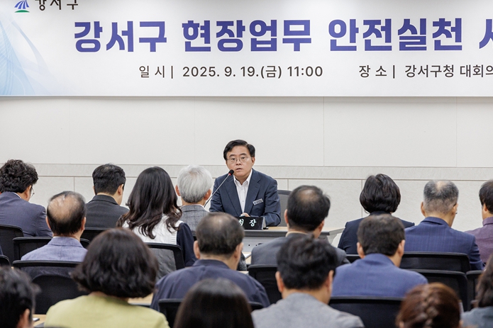 서울 강서구는 19일 구청 대회의실에서 ‘현장업무 안전 실천 서약식’을 열고 안전사고 없는 사업장 조성을 위한 실천 의지를 다졌다. 구는 지난 18일 청소 용역업체 종사자 사망 사고가 발생함에 따라 안전한 사업현장을 조성하겠다는 결연한 의지를 다지기 위해 마련됐다. 서약식에는 청소, 공원녹지, 도로, 하수, 공공시설 등 구의 현장 업무를 처리하는 용역업체 대표자 및 관계자 90여 명이 참석했다. 이날 진 구청장을 비롯한 참석자들은 서약서에 서명하며 산업재해 예방을 위한 실천 의지를 함께 다졌다. 서약서에는 ▲강서구민과 종사자의 생명 및 안전 최우선 ▲안전보건관리체계 구축으로 안전한 사업장 조성 ▲현장 안전수칙 준수 ▲안전문화 확산을 위한 전직원 안전교육 지속 실시 등 안전보건 의무이행을 위한 실천 항목이 담겼다. 서약식에 이어 현장에서 발생할 수 있는 사례를 중심으로 산업재해 예방 교육도 진행됐다. 진 구청장은 “안타까운 사고가 발생해 구청장으로서 너무나 참담한 마음이다. 구에서는 지금의 상황을 매우 엄중하고 비상하게 인식하고 있다”며 “유사사고 재발방지를 위해 안전한 사업 현장 조성에 각고의 노력을 다하겠다”고 말했다. 이어 “모든 사업 현장에서는 반드시 지켜야 하는 안전수칙이 있지만 현장에선 때로는 번거롭고 불편하다는 이유로 묵인하거나 간과하는 경우가 있다”며 “이러한 일이 반복될수록 안전에 틈이 벌어지는 만큼 안전수칙이 지켜질 수 있도록 반복적으로 교육하고 확인하는 등 각별히 노력해달라”고 당부했다. 특히, “안전사고는 현장에서 조금의 미흡한 점이 있거나 경계심을 늦추면 언제든지 발생할 수 있다”며 “현장 안전수칙의 중요성을 다시금 확인하고 이를 지키기 위한 비상한 각오를 새롭게 다져야 한다”고 강조했다.