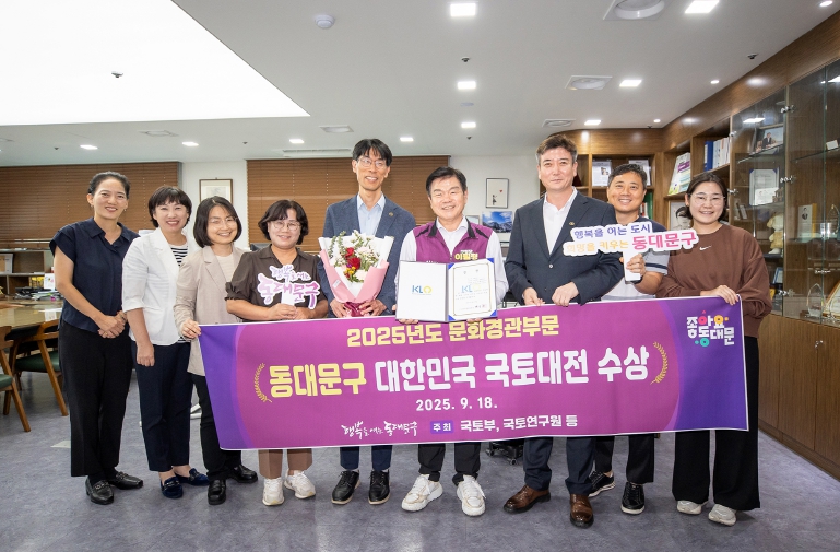 서울 동대문구는 국토교통부가 주관한`2025 대한민국 국토대전`에서 ‘꽃으로 도시를 치유하다–정원경관 프로젝트’로 문화경관 부문 우수작에 선정됐다.이번 수상은 10년 이상 방치됐던 전농동 691-1번지 유휴지(현 ‘지식의 꽃밭’)와 조도 부족, 노숙인 상주 등으로 불안 민원이 이어졌던 통학로(신답초~숭인중, 현 ‘청량꿈숲’)를 정원형 공공공간으로 전환한 성과를 인정받은 것이다.동대문구는 단순한 도시경관 개선을 넘어 주민이 직접 참여하는 협치형 정원 행정을 도입했다. ‘지식의 꽃밭’에는 사계절 초화원, 잔디광장, 책마중정원, 창포원, 맨발산책로 등을 조성하여 하루 평균 1,800명 이상이 찾는 지역 명소로 자리 잡았다. ‘청량꿈숲’은 학생이 만든 시화정원, 움직이는 놀이시설(플레잉월), 스마트폴 조명 등을 도입해 걷고 싶은 안전한 보행축으로 거듭났다.구는 주민 의견을 적극 반영하기 위해 TF 중심으로 조직을 탄력적으로 운영하고, 정원사 제도 도입 및 조례 제정 등을 통해 지속가능한 정원문화 기반을 다졌다. 특히 자치구 최초로 정원 유지관리 참여형 정책을 제도화하여 현재까지 양성된 시민정원사 62명이 50여 개 정원을 돌보고 있다.정원 조성은 휘봉고, 배봉초, 군자초 등 학교 주변 그린숲으로도 확산되고 있으며, 교차로 교통섬이나 방치된 자투리 녹지에도 적용되어 총 60개소 이상에서 공공 정원화가 진행 중이다. 주민 만족도는 90% 이상으로, 정원이 공동체 소통과 정서적 치유 공간으로 기능하고 있음을 보여준다.‘꽃으로 도시를 치유하다’라는 프로젝트명처럼, 이번 사업은 도시환경 개선을 넘어 사람과 자연, 그리고 사람 간의 관계 회복까지 이끌어냈다.이필형 동대문구청장은 “이번 수상은 꽃을 심고 가꿔온 주민 여러분의 헌신 덕분”이라며, “앞으로도 주민과 함께 도시문제를 자연기반 정원으로 풀어가는 지속가능한 정원도시를 만들겠다.”라고 밝혔다.동대문구는 이번 수상 경험을 바탕으로 통학로 그린숲 확대, 교통섬·자투리 공간 정원화 등 ‘꽃의 도시 동대문’ 실현을 위한 정원정책을 지속할 계획이다.