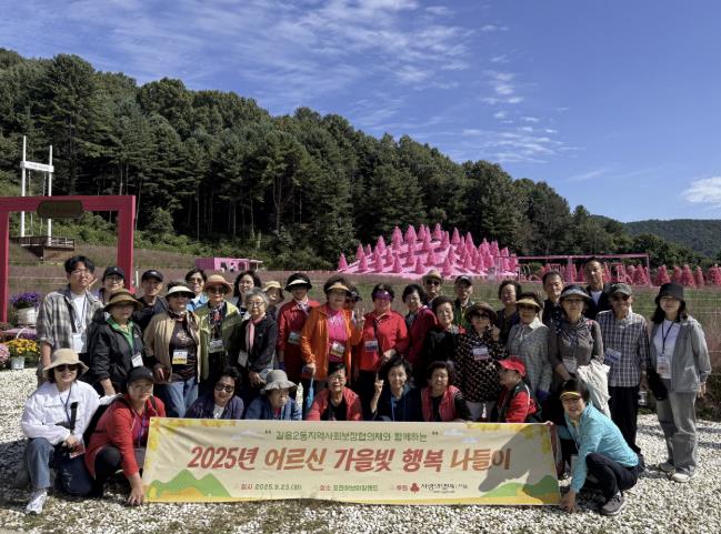 서울 성북구 길음2동지역사회보장협의체위원들이 지난 9월 23일 관내 어르신 30명과 함께 포천 허브아일랜드로 가을 나들이를 다녀왔다. 이번 행사는 가을 정취를 만끽하며 지역사회 안에서 따뜻한 소통의 자리를 마련하기 위해 추진됐다.어르신들은 허브아일랜드에 도착해 트랙터를 타고 핑크뮬리가 물든 허브팜을 둘러보며 가을 풍경을 즐겼다. 이어 허브 베개 만들기와 허브 오일 족욕 체험을 통해 심신의 피로를 풀고 여유로운 시간을 보냈다.이명희 위원장은 “지역사회보장협의체가 앞으로도 취약계층 어르신들이 소외되지 않고 건강하고 따뜻한 일상을 누릴 수 있도록 더욱 세심하게 살피겠다”고 밝혔다. 행사에 참여한 어르신들은 “가을 바람을 맞으며 아름다운 경치를 보고 다양한 체험을 하니 기분이 좋았다”며 “이런 기회를 자주 마련해 주면 좋겠다”고 소감을 전했다.김현숙 길음2동장은 “어르신들과 함께한 이번 가을 나들이가 단순한 외출을 넘어 서로가 친구가 되고 지역사회의 온정을 나누는 계기가 됐길 바란다”며 “앞으로도 어르신들을 위한 다양한 프로그램을 마련해 나가겠다”고 말했다.
