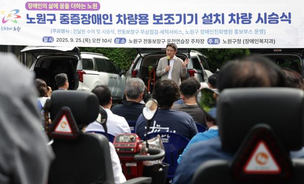 서울 노원구가 25일, 중증장애인 차량용 보조기기 시승 행사장에서 장애인 보호자가 진심을 담아 쓴 편지의 감동 사연을 소개했다.편지를 쓴 주인공은 곽성호(27세, 남)씨의 어머니 김혜경씨다. 뇌병변장애인인 아들을 차에 태울 때마다 특수 자세 보조기구를 장착한 탓에 45kg에 달하는 휠체어와 다 커 버린 아들의 무게에 힘겨워하던 김씨는, 올해 구에서 처음 도입한 “중증장애인 차량용 보조기기 설치” 시범사업의 지원대상자로 선정됐다.주 5일 이상 차량을 이용하는 틈틈이 본인도 허리협착증을 치료 중인 김씨는 카니발차량용 슬로프 장치의 설치비용을 지원 받았다. 구의 보조기기 설치 사업은 이처럼 휠체어와 차량 사이의 이동 불편 사각지대를 해소하기 위해 마련됐다.차량과 휠체어 사이를 갈아타거나, 휠체어에서 운전석으로 이동, 또는 휠체어를 차량에 싣고 이동하는 과정마다 보조기기가 필요하기 때문이다. 그동안은 해당 보조기기에 대한 지자체의 지원이 없었던 것을, 올해 구에서 최초로 시범사업으로 추진하여 3명의 장애인 가족을 대상자로 선정했다.보조기기 설치가 완료되며 시승 행사가 개최된 이 날, 김씨는 구청장과 담당 부서에 감사한 마음을 담은 손편지를 들고 참석해 낭독하며 행사장의 온기를 더했다.편지에서 김씨는 “한 번 움직일 때마다 비가 오나 눈이 오나 나보다 커져 버린 아이를 안아 태우고 휠체어를 들어 차에 싣고 또 내리는” 일상의 고단함을 생생하게 소개하며, “한 대의 장비 지원을 넘어 뇌병변장애인 가족이 다시 세상과 마주할 수 있는 문을 열어준 것”이라고 이번 사업의 의미를 당사자의 입장에서 밝혔다. 또한 장애인 당사자와 가족의 목소리에 귀 기울여 준 오승록 구청장과 장애인복지과 공무원들에게 감사하는 마음을 진솔하게 거듭 전했다.김씨의 편지 낭독에 장애인단체와 복지시설 관계자 등 100여 명이 모인 행사장은 금세 훈훈한 온기와 감동이 전해졌다. 지난해 개장한 노원구 장애인 전동보장구운전연습장 일원에서 열린 이번 행사는, 장애인들의 전동보장구 무상점검과 세척 서비스도 진행되며 성황리에 개최됐다.행사에서 구 장애인복지과는 이번 시범사업을 추진하는 과정을 장애인 당사자에게 상세히 공개하는 한편, 최근 역점적으로 추진하고 있는 장애인친화병원의 확대 운영 성과도 소개했다.오승록 노원구청장은 “이번 사업 역시 작년 장애인부모 단체에서 일상의 어려움을 말씀해 주신 것으로 시작되어 정책으로 다듬어질 수 있었다”며 “앞으로도 장애인 당사자와 보호자들의 목소리에 귀 기울이고 장애인의 입장에서 꼭 필요한 일들을 찾아나서겠다”고 말했다.