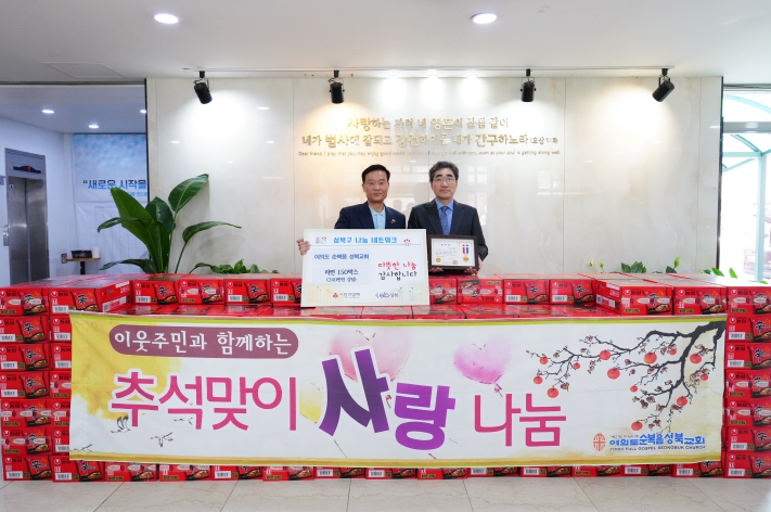 서울 성북구는 지난 10월 2일 여의도순복음성북교회(담임목사 정재명)에 감사장을 전달하며, 꾸준한 지역사회 나눔 실천에 감사를 전했다.여의도순복음성북교회는 수년째 성북구와 협력해 취약계층 지원, 이웃돕기 성품 기부 등 다양한 나눔 활동을 이어오고 있다. 올해도 변함없이 라면 150박스를 후원하며 어려운 이웃에게 따뜻한 온정을 전했다.감사장 전달식은 교회에서 진행됐으며, 이승로 구청장과 정재명 담임목사를 비롯한 교회 관계자들이 참석했다. 전달식 후 이어진 차담회에서는 지역 복지 사각지대 해소를 위한 협력 방안을 함께 논의하며, 나눔의 의미를 다시금 나누는 시간을 가졌다.정재명 담임목사는 “작지만 정성 어린 나눔이 어려운 이웃의 마음을 따뜻하게 감쌀 수 있기를 바란다”며 “앞으로도 교회가 지역과 함께하는 따뜻한 공동체로 자리하겠다”고 말했다.이승로 성북구청장은 “여의도순복음성북교회는 오랜 기간 지역사회를 위해 꾸준히 나눔을 실천해온 든든한 이웃”이라며 “이웃 사랑의 마음이 지역에 큰 힘이 되고 있으며, 구에서도 이러한 나눔 문화가 확산될 수 있도록 적극 지원하겠다”고 전했다.기부된 라면은 동주민센터를 통해 관내 저소득층과 복지 사각지대 가정에 전달될 예정으로, 구는 이번 기부가 쌀쌀한 계절 속에서 주민들에게 따뜻한 위로가 될 것으로 기대하고 있다.