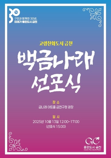금천구는 13일 오후 3시 금나래아트홀 공연장에서 ‘백금나래 선포식’을 연다고 밝혔다. 금천구 개청 30주년과 제2기(2025~2029년) 고령친화도시 조성의 시작을 기념하는 자리다. 금천구 대표 캐릭터인 금나래와 어르신의 백발을 합친 표현 ‘백금나래’를 통해 건강하고 주도적인 노년의 삶을 강조한다. 금천구는 2024년 노인 인구가 20%로 초고령사회에 진입했다. 이와 함께 노년과 다른 세대가 서로 공감하며 모든 세대가 어울리며 하나되는 통합도 선포할 예정이다. 이번 행사는 크게 ▲ 선포식 ▲ 체험부스 등 두 부분으로 이루어진다. 우선 선포식은 오후 3시부터 금나래아트홀 공연장에서 펼쳐진다. 각 세대별 대표자들이 세대 통합을 선언하는 백금나래를 선포한다. 선언문을 낭독하고 슬로건 이벤트 기념촬영이 이루어질 예정이다. 또한, 마술 퍼포먼스, 합창, 태권도 공연 등 다채로운 문화 공연이 준비되어 있어 참가자들에게 즐거움과 감동을 선사할 예정이다.특히 활발한 활동으로 금천구민의 사랑을 받고있는 ‘금천구립시니어합창단’이 특별공연을 통해 고령친화도시의 의미를 더할 것으로 보인다. 12시부터 오후 5시까지는 금천구청 광장에서 주민들이 참여할 수 있는 체험, 상담부스가 운영된다. 9개의 기관에서 ▲ 건강상담부스 ▲ 추억부스 ▲ 일자리상담부스 ▲ 환경부스 ▲뷰티부스 ▲먹거리부스 등을 운영한다.유성훈 금천구청장은 “백금나래 선포식을 통해 어르신의 건강하고 주도적인 삶을 응원하고, 세대 간 서로 협력하는 공동체 문화를 확산시키고자 한다”라며 “백세시대에 발맞춰 노년이 행복한 금천을 만들기 위해 최선을 다 하겠다”라고 말했다.자세한 사항은 금천구청 어르신장애인과로 문의하면 안내받을 수 있다.
