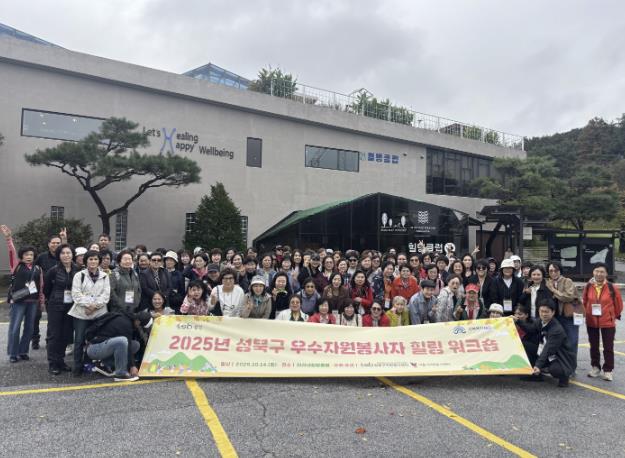 서울 성북복지재단 자원봉사센터가 지난 10월 14일 양평 힐빙미리내클럽에서 ‘2025년 우수자원봉사자 워크숍’을 개최했다. 이번 행사는 한 해 동안 지역사회와 이웃을 위해 헌신한 자원봉사자들의 노고를 격려하고, 봉사 현장에서의 경험과 사례를 공유하는 소통의 장으로 마련됐다.이날 워크숍에는 우수 자원봉사자 120명을 비롯해 성북구청과 성북복지재단 관계자 등이 참석했다. 참석자들은 한 해의 봉사활동을 돌아보며 서로의 노고를 격려하고, 앞으로도 지역사회를 위한 나눔과 실천을 이어가겠다는 의지를 다졌다.윤재성 성북복지재단 이사장은 “여러분의 헌신과 열정이 우리 사회를 더욱 따뜻하게 만들고 있다”며 “앞으로도 자원봉사 문화가 더욱 확산될 수 있도록 적극 지원하겠다”고 말했다.이승로 성북구청장은 “자원봉사자분들 간의 소통을 통해 유대감과 자긍심을 높이고, 이번 워크숍이 재충전과 여유를 즐기는 시간이 됐으면 좋겠다”고 격려의 뜻을 전했다.성북복지재단 자원봉사센터는 앞으로도 지역사회의 행복과 나눔 문화를 확산하기 위해 다양한 자원봉사 프로그램을 지속적으로 추진할 계획이다.