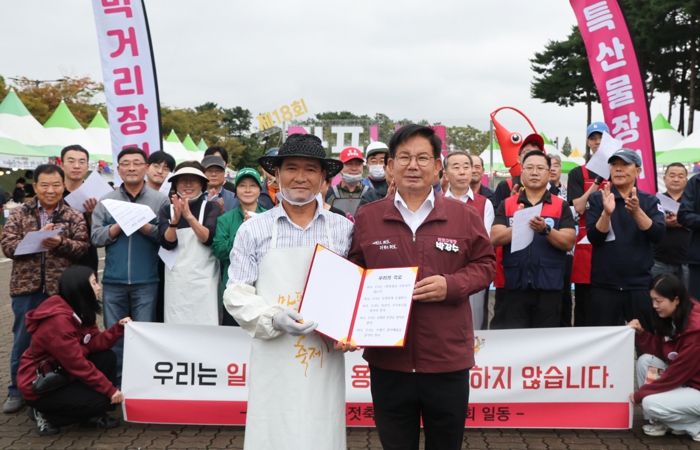 박강수 마포구청장은 10월 18일 오전 10시, 제18회 마포나루 새우젓축제 장터에서 ‘1회용품 사용 안 하기’ 캠페인에 함께하며 친환경 실천 문화를 확산시켰다.이번 캠페인은 제18회 마포나루 새우젓축제 운영 기간 동안 1회용품 사용 자제, 원산지·가격 표시, 위생·안전 관리, 쓰레기 분리배출 등 건전한 축제 문화 확산을 목표로 마련됐다.이날 박강수 마포구청장과 홍일표 광천토굴 새우젓 판매 상인을 비롯한 새우젓 장터, 특산물 장터, 먹거리 장터 상인들은 “하나, 우리는 1회용품을 사용하지 않는다”, “하나, 우리는 친절하게 응대한다”, “하나, 우리는 원산지·가격표시를 철저히 한다”, “하나, 우리는 위생과 안전을 철저히 한다”, “하나, 우리는 쓰레기 분리배출을 철저히 한다” 라는 다섯 가지 구호를 함께 외치며 상인 스스로 지켜가는 깨끗한 장터의 다짐을 전했다.장터 곳곳에서는 다회용기와 친환경 포장재를 사용하는 상인들의 모습이 이어졌고, 축제에 온 관광객들도 “1회용기가 없어서 장터가 훨씬 깔끔하다”, “가격과 원산지 표시가 잘 되어 있어 믿음이 간다”라며 긍정적인 반응을 보였다.박강수 마포구청장은 “마포를 대표하는 새우젓축제에서부터 위생과 친환경, 신뢰의 약속을 실천해 나가겠다”라며, “신뢰할 수 있는 장터, 바가지요금 없는 거래, 믿을 수 있는 품질, 친절한 응대로 기억될 수 있도록 오늘의 다짐을 꾸준히 지켜가겠다”라고 말했다.