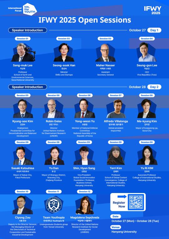 서울 은평구는 국제청년포럼 이프위(IFWY, International Forum We, the Youth)의 파이널 콘퍼런스 프로그램인 오픈 세션(Open Sessions)이 오는 27일부터 28일까지 한양대학교에서 진행된다고 밝혔다.구는 유엔사회개발연구소(UNRISD), MBC, 한양대학교와 함께 이번 포럼을 공동으로 주최하며, 지역과 세계를 잇는 지속 가능한 협력의 장을 마련하고 있다.오픈 세션은 전 세계 청년과 세계의 리더가 변화를 위한 연결(Connect for Change)을 주제로 의견을 나누는 공개 대화 프로그램이다.총 12개 세션으로 구성된 이번 프로그램은 ▲청년의 기업가정신 ▲평화와 지속가능성 ▲디지털 녹색산업 ▲균형 성장 등 다양한 주제를 아우르며 청년과 전문가, 정책 리더는 함께 실질적인 해법을 모색한다.특히, 김미경 구청장은 오픈 세션의 일환으로 28일 한양대학교 백남음악관에서 열리는 ‘밸런스 스퀘어(Balance Square)’ 세션에 연사로 참여한다. 은평구의 청년 정책과 문화도시 전략, 도시재생 사례를 중심으로 지역이 함께 성장하는 균형 모델과 시민 참여형 정책 방향을 제시할 예정이다.이번 세션에는 일본 사사키 가쓰히사 사바에 시장, 중국 유 단 저장성 샹유구 구청장이 함께하며 지방정부의 균형 성장과 협력적 리더십을 주제로 토론이 진행된다.포럼의 마지막 날인 오는 29일에는 은평구 진관사에서 폐막식이 열린다. 이 자리에서 전 세계 청년 대표단은 3일간의 논의를 바탕으로 ‘이프위(IFWY) 2025 은평선언문(Eunpyeong Declaration)‘을 발표한다.은평구는 이번 선언이 지역에서 출발한 대화가 세계적 의제로 확장되는 상징적 계기가 될 것으로 보고 있다.김미경 은평구청장은 “도시는 경쟁이 아니라 연결을 통해 성장해야 한다”며 ”진관포럼에서 시작된 지역의 대화가 이제 세계 청년들과 이어지고 있다. 생각은 전 세계적으로, 실천은 지역적으로(Think Global, Act Local) 하기 위한 이번 포럼이 지역의 경험을 세계와 공유하는 새로운 출발점이 되길 바란다“고 말했다.