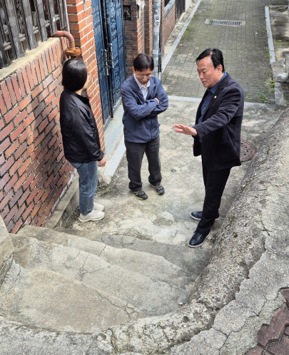 심재억 강북구의회 도시복지위원장은 지난 2025년 10월 21일, 송천동 내 파손된 계단이 있는 골목길(삼양로22길12 앞)을 강북구 도로관리과 담당자와 방문하고 시설 개선을 촉구했다. 해당 계단은 동네 어르신들의 통행이 잦은 구간임에도 노후화와 파손이 심각하여 낙상 사고가 발생하는 등 지역 주민의 안전을 위협해 왔다. 지난 달에도 어르신 한 분이 계단에서 넘어져 머리에 부상을 입는 안타까운 사고가 발생한 사실이 있어 시설 개선 시급성이 매우 높다. 심 위원장은 현장을 방문하여 강북구 도로관리과에 계단의 신속한 보수를 요청했다. 더 나아가 어르신 등 보행 약자들이 안전하게 통행하고 균형을 잡을 수 있도록 계단 양측에 손잡이 설치 검토를 지시했다. 또한 계단이 끝나는 위쪽 길과 이어지는 부분에도 별다른 안전장치가 없어 추락 사고를 예방하기 위한 난간을 설치하여 2차 안전사고를 방지하도록 촉구하기도 했다. 계단 보수 및 안전시설 설치가 완료되면, 그동안 반복되던 낙상 사고를 획기적으로 줄이고 중대 인명 피해를 미연에 방지하는 효과가 기대된다. 그리고 손잡이와 난간 설치는 어르신들을 포함한 모든 주민이 심리적으로 안심하고 골목길을 이용할 수 있게 하여 일상생활 속 보행 안전과 편의를 크게 증진 시킬 것이다. 심재억 위원장은 “강북구청은 주민 안전을 최우선으로 고려하여 요청 사항들을 최대한 신속하게 조치하고, 안심하고 통행할 수 있는 환경을 조성하는 데 만전을 기해달라”라고 당부하며, 안전한 강북구 만들기에 대한 의지를 밝혔다.