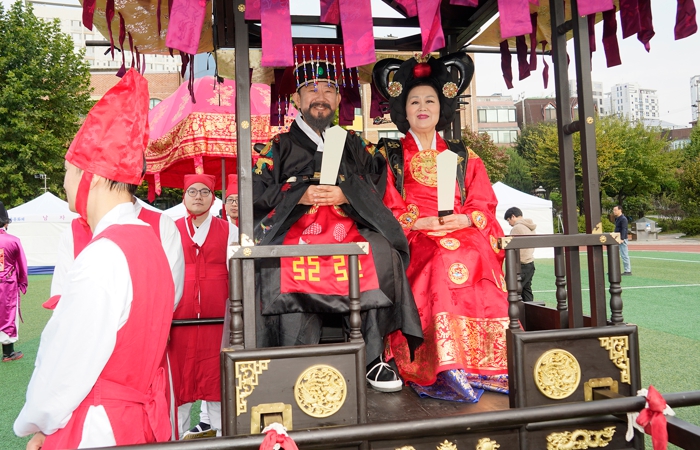 서울 동대문구는 25일 용두초등학교 운동장에서 열린`제35회 청룡문화제`가 주민들의 뜨거운 호응 속에 성황리에 마무리됐다고 밝혔다.올해 행사는 동대문문화원과 청룡문화제보존위원회가 공동 주관하고 동대문구가 후원했으며, 오랜 역사와 전통을 이어온 지역 대표 축제로 다시 한 번 그 위상을 입증했다.‘청룡문화제’는 조선 태종 시절부터 내려온 전통 기우제 ‘동방청룡제’에서 유래한 행사로, 일제강점기 중단 이후 주민들의 노력으로 1991년에 복원돼 올해로 35회를 맞았다. 올해는 지난해 약식으로 진행된 어가행렬이 정식으로 부활하며, 용두동주민센터에서 용두초등학교까지 약 1.1km 구간을 웅장하게 행진해 관람객들의 큰 박수를 받았다.이어진 ‘동방청룡제향’에서는 임금의 폐백례와 제관의 제향이 거행됐고, 올해 첫 수확한 햅쌀을 진상하는 ‘진상례’가 함께 진행돼 전통의례의 의미를 되새겼다. 행사장 곳곳에서는 전통의상체험, 캘리그라피, 소원트리, 전통놀이체험 등 가족 단위 관람객들이 함께 즐길 수 있는 다채로운 체험 부스가 운영됐으며, 오후 내내 지역예술단체와 무형문화재의 공연이 이어져 흥겨운 분위기를 자아냈다.이필형 동대문구청장은 “청룡문화제는 조선시대 임금이 직접 참여했던 기우제를 지역의 손으로 되살린 뜻깊은 행사”라며, “정식 어가행렬의 부활로 역사적 의미를 더했고, 가족과 아이들이 함께 전통문화를 체험하며 문화도시 동대문의 매력을 느낄 수 있는 시간이 됐다.”라고 말했다.