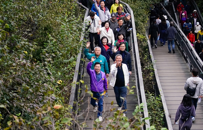 서울 동대문구는 25일 아침, 배봉산 열린광장에서『2025년 하반기 동대문구민 한마음 걷기의 날』을 개최하고, 3,500여 명의 구민이 함께 가을 정취 속 건강한 한 걸음을 내딛었다.이번 행사는 동대문구체육회가 주최하고 동대문구가 후원한 대표적인 구민 참여형 건강 프로그램으로, 배봉산 둘레길 약 4.5km 구간을 따라 진행됐다. 가을 햇살 아래 구민들이 가족·이웃과 함께 걷고 대화하며 웃음이 넘치는 시간이 이어졌다.행사는 식전 공연을 시작으로 개회식과 줄넘기 시범단의 역동적인 무대, 몸풀기 체조가 이어지며 아침부터 활기찬 분위기를 만들었다. 본격적인 걷기 코스에서는 숲속의 상쾌한 공기를 마시며 천천히 걸을 수 있어, 참가자들은 “건강도 챙기고 힐링도 되는 시간이었다.”라며 만족감을 보였다.또한 무장애 나무데크로 조성된 배봉산 둘레길은 유모차나 휠체어 이용자도 편하게 참여할 수 있어, 전 세대가 함께 어우러지는 진정한 ‘구민 화합의 장’이 됐다.이필형 동대문구청장은 “맑은 공기를 마시며 이웃과 함께 걷는 시간이 구민의 건강과 행복을 지키는 최고의 예방의학”이라며 “앞으로도 주민 모두가 함께 참여할 수 있는 건강한 축제를 꾸준히 이어가겠다.”라고 말했다.한편, 완주자에게만 배부된 경품권으로 진행된 경품 추첨에서는 실생활에 유용한 상품이 다수 마련돼 행사장의 분위기를 한층 뜨겁게 달궜다.