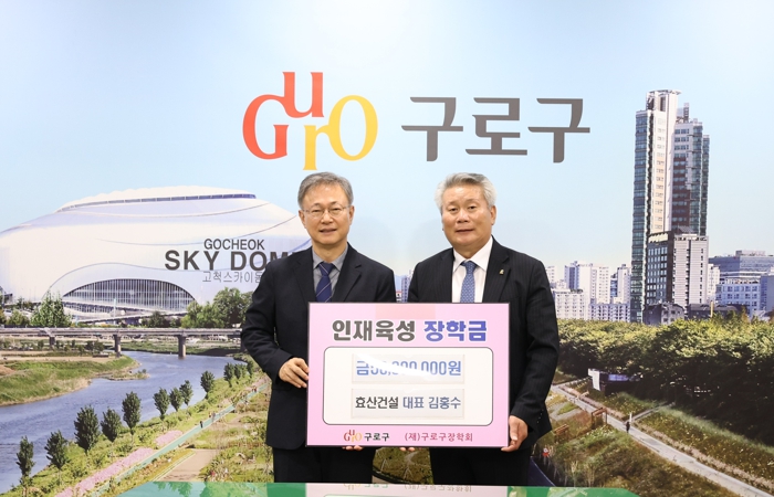 (재)구로구장학회는 지난 24일 구청 강당에서 구로장학생 장학증서 수여식을 개최했다.구로구장학회는 관내 고등학교 재학생 중 우수한 학생을 발굴해 ‘구로장학생 장학금’을 매년 전달하고 있다.올해는 경인고등학교, 서서울생활과학고등학교 학생 등 총 80명이 장학생으로 선정됐으며, 1인당 100만 원의 장학금을 받게 됐다.구로구장학회 주관으로 열린 이날 행사는 △국민의례 △내빈 소개 △축사 △장학증서 수여 △기념사진 촬영 순으로 진행됐으며, 김홍수 구로구장학회 이사장과 장인홍 구로구청장 등 100여 명이 참석해 장학생들을 격려하는 시간을 가졌다. 구로구 관계자는 “이번 장학금을 밑거름 삼아 학생들이 더 큰 꿈을 향해 나아갈 수 있는 기회가 되길 바란다”며, “앞으로도 교육 도시 구로를 만들기 위한 노력을 이어 나가겠다”고 말했다.한편, 본행사에 앞서 김홍수 구로구장학회 이사장이 5,000만 원의 기부금을 장학회에 전달했다. 이번 기부금도 지역 인재 육성을 위해 사용될 예정이다.