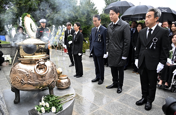 오세훈 서울시장이 26일 오전 11시 국립서울현충원(동작구 현충로 210)에서 열린 ‘박정희 대통령 서거 제46주기 추모식’에 참석해 분향 및 헌화했다. 1980년부터 매년 개최된 ‘박정희 대통령 추도식’은 이날 정재호 추모위원장이자 전 국회의원 등 3백여 명이 참석한 가운데 90분 동안 진행됐다.
